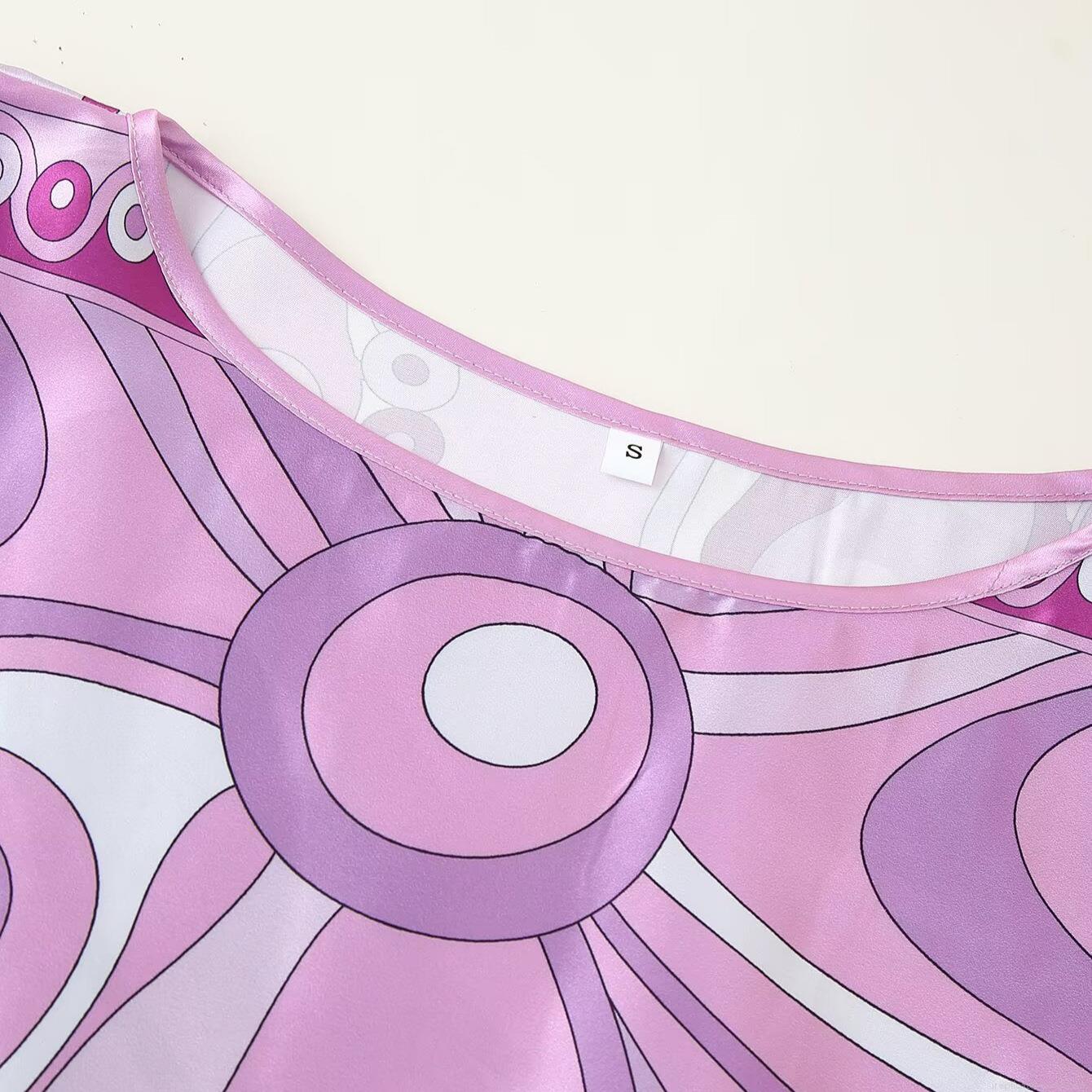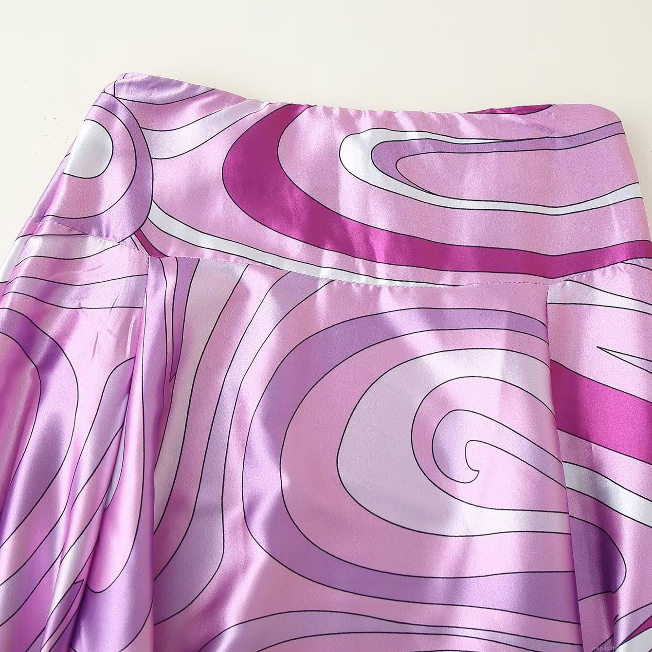 Wave, Swirling Pattern, Satin Finish, Abstract Print, Cloak Style, Raglan Sleeves, Positioning Printing, High-waisted Wide Skirt