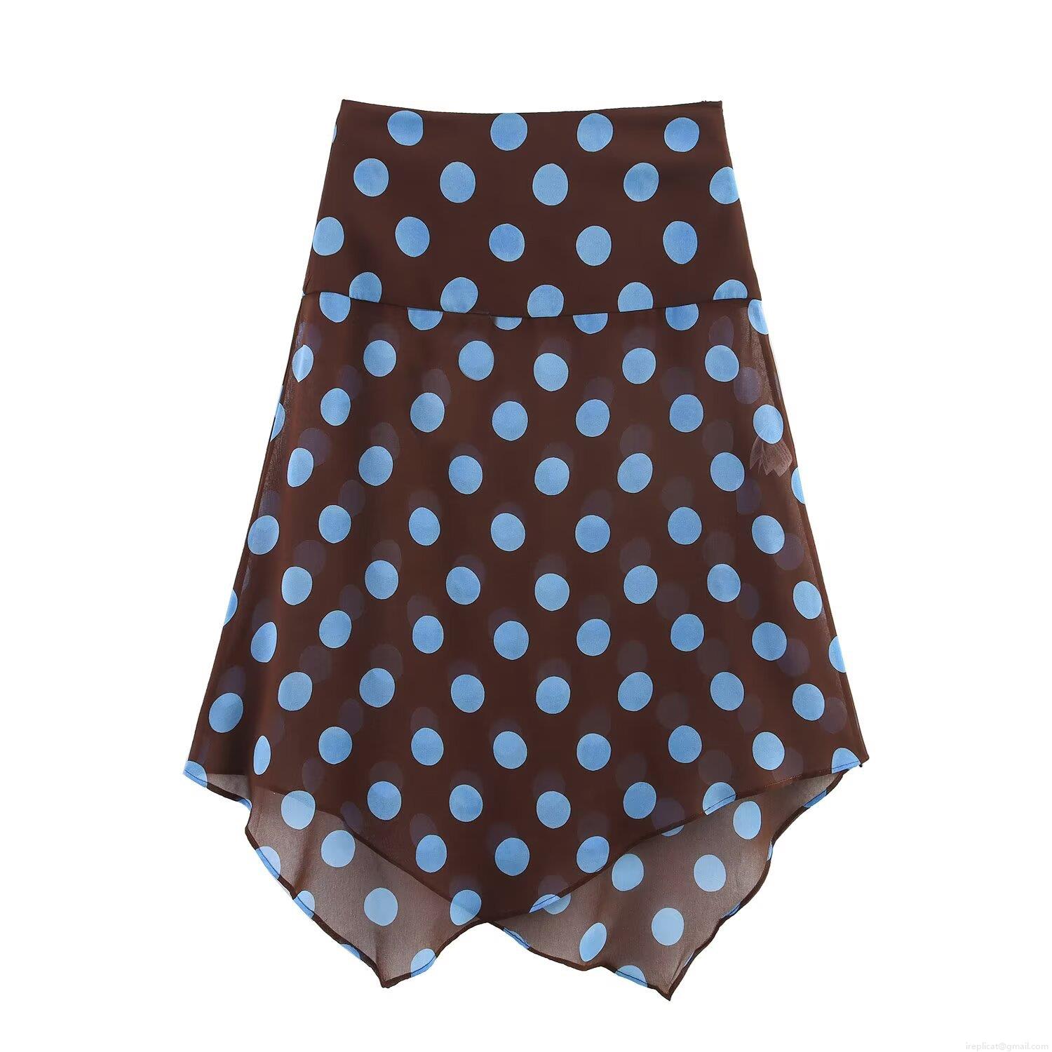 • Women's Summer Chiffon Polyester Polka Dot Set Halter Neck Backless Top And Irregular Hem Midi Skirt Two Piece Outfits Streetwear Casual Vacation Women Clothing