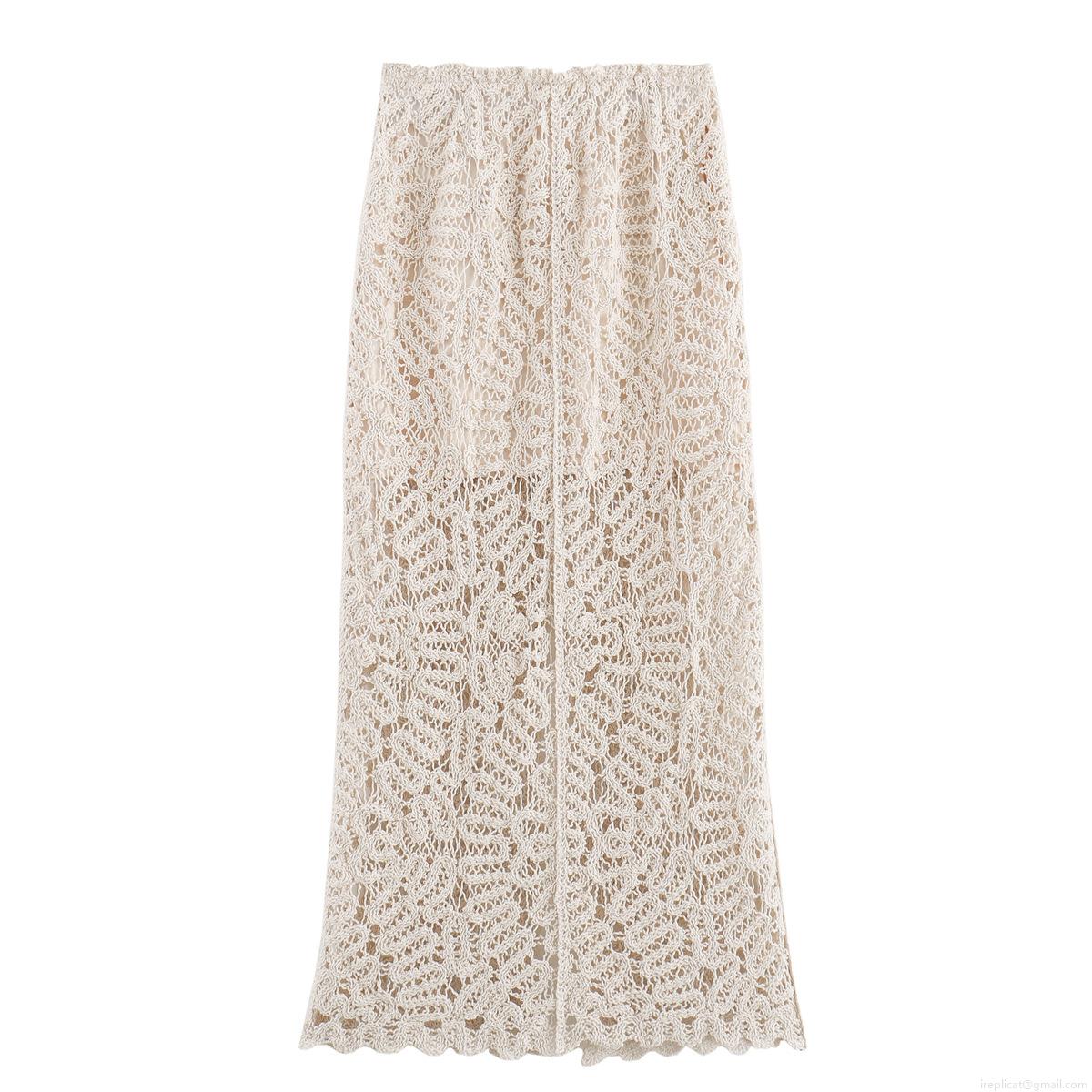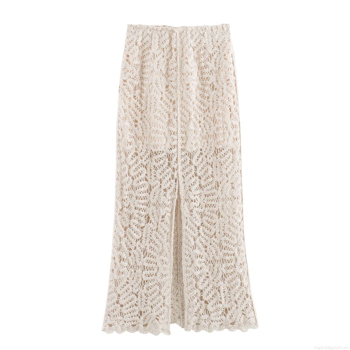• Women's Summer Crochet Knit Two Piece Set Sleeveless Hollow Out Lace Vest And High Waist Split Maxi Skirt Bohemian Vacation Beach Outfits