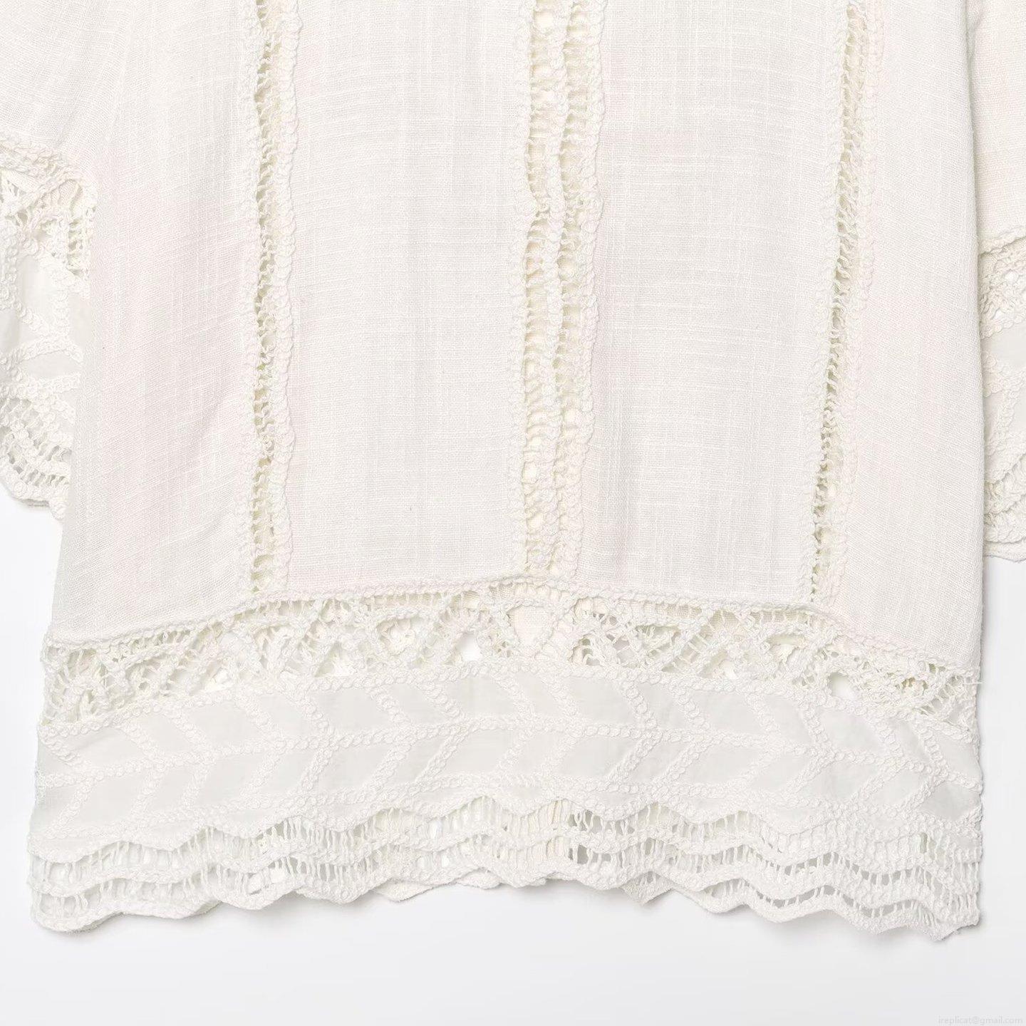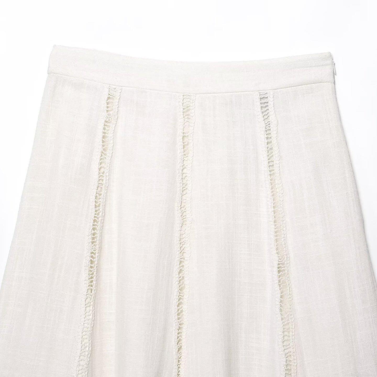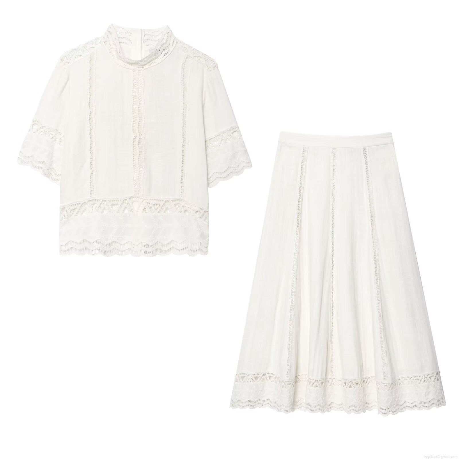 • Women's Summer Elegant White Crochet Lace Hollow Out Short Sleeve Top And Midi Skirt Set Breathable Cotton Blend Two-Piece Outfits For Vacation Dating
