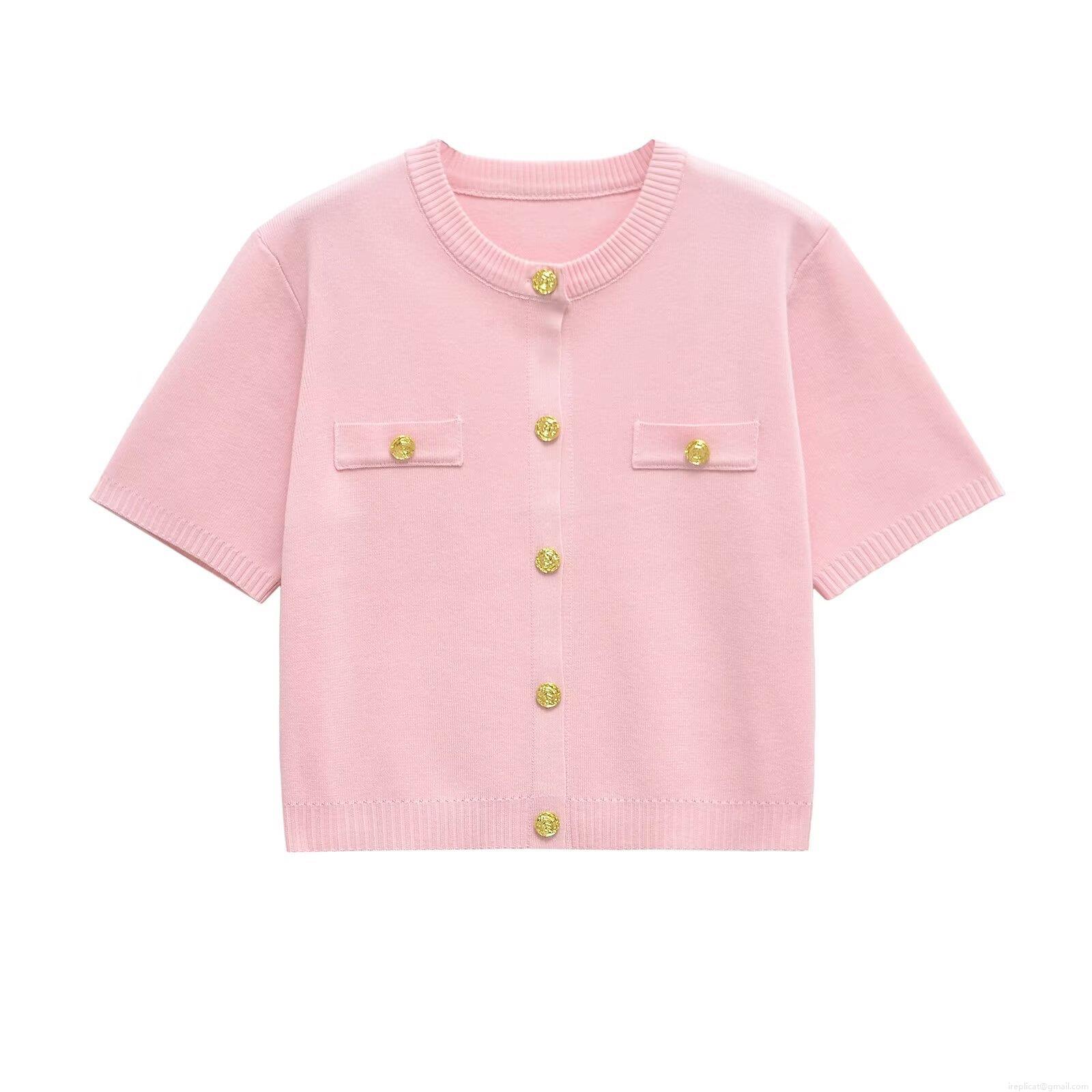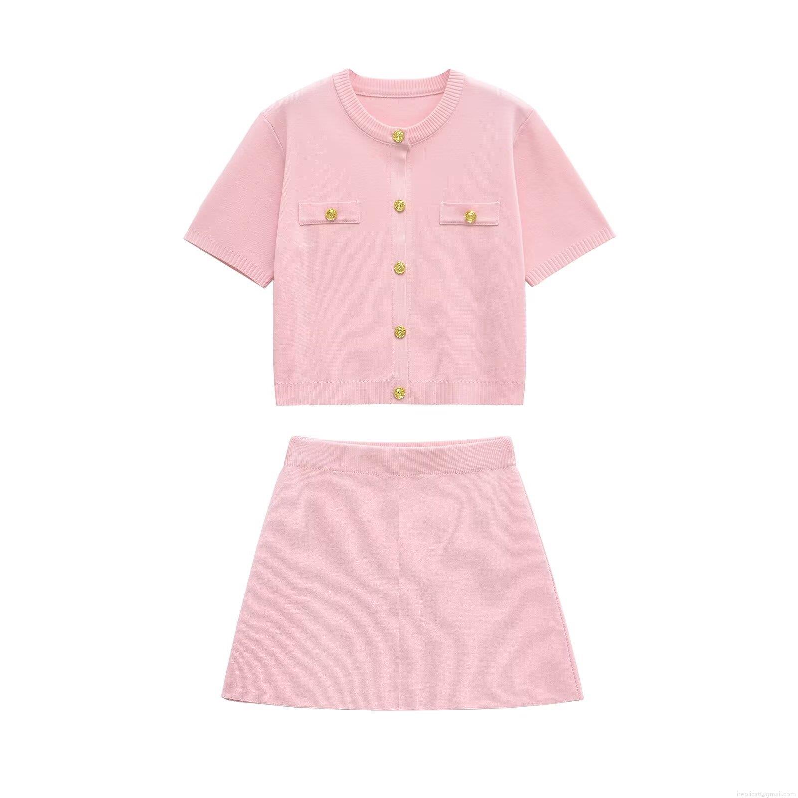 Women's Summer Knit Two Piece Set Elegant Short Sleeve Cardigan Top And Mini A-Line Skirt Elegant Street Style Casual Wear Outfit For Women Pink Yellow White
