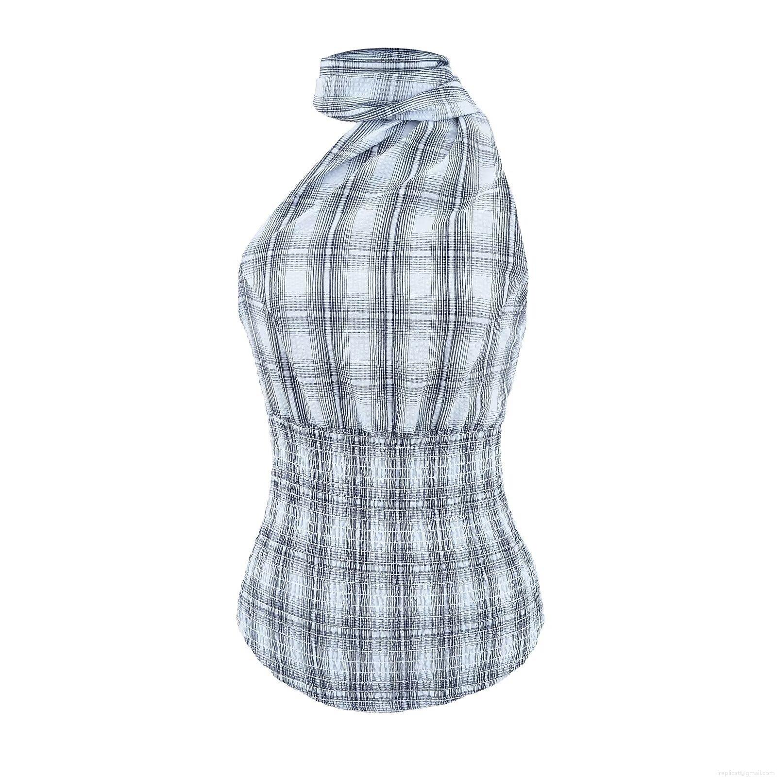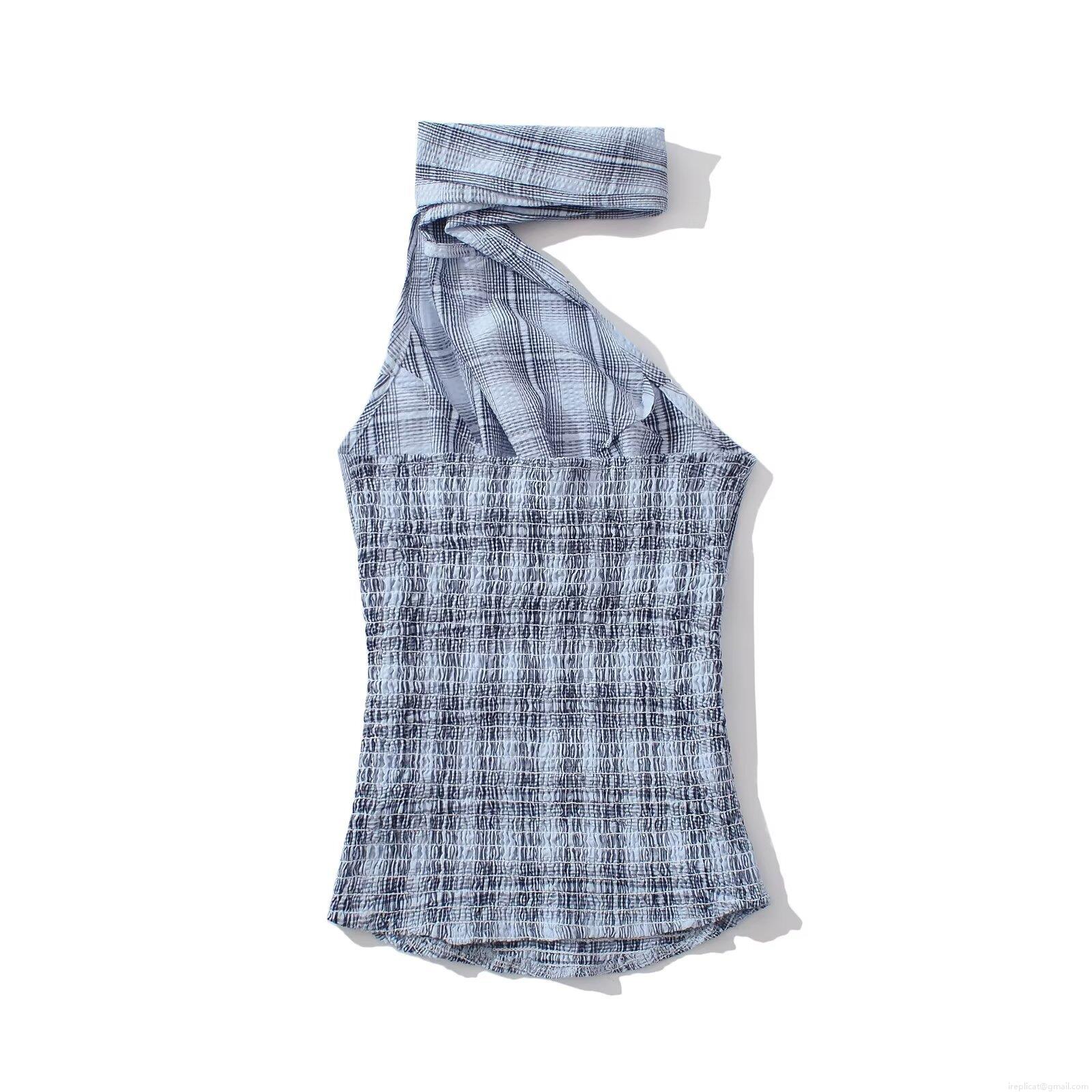 • Women's Summer Plaid Halter Neck Sleeveless Crop Top and Mini Skort Set Two-Piece Smocked Checkered Outfits Streetwear
