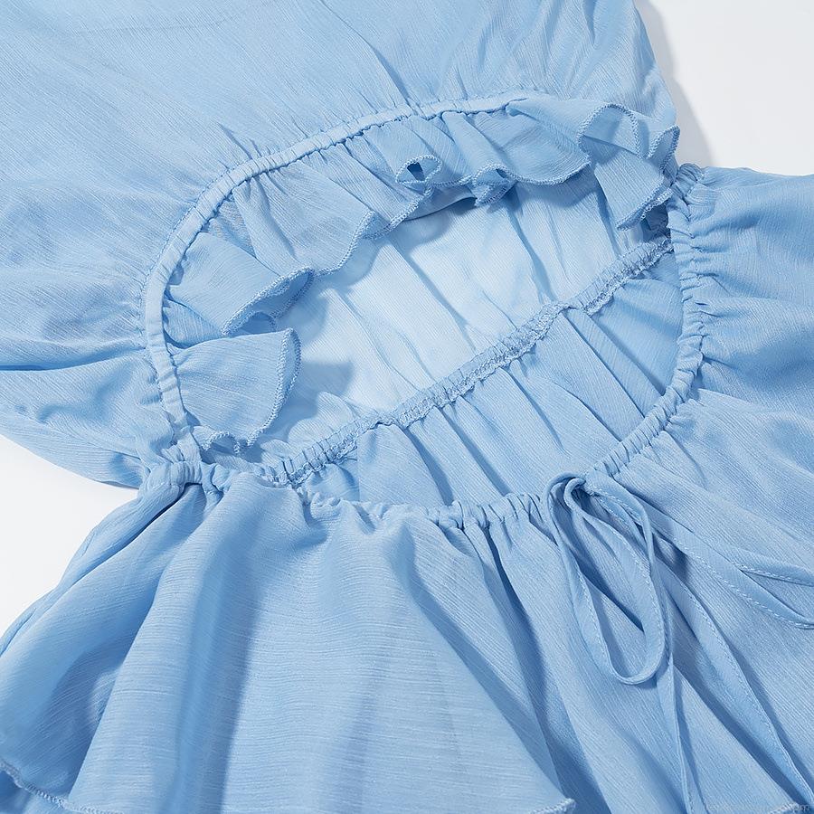 Solid Color, Splice, Ruffles, Pleats, Drawstring, Showing Off Your Waist
