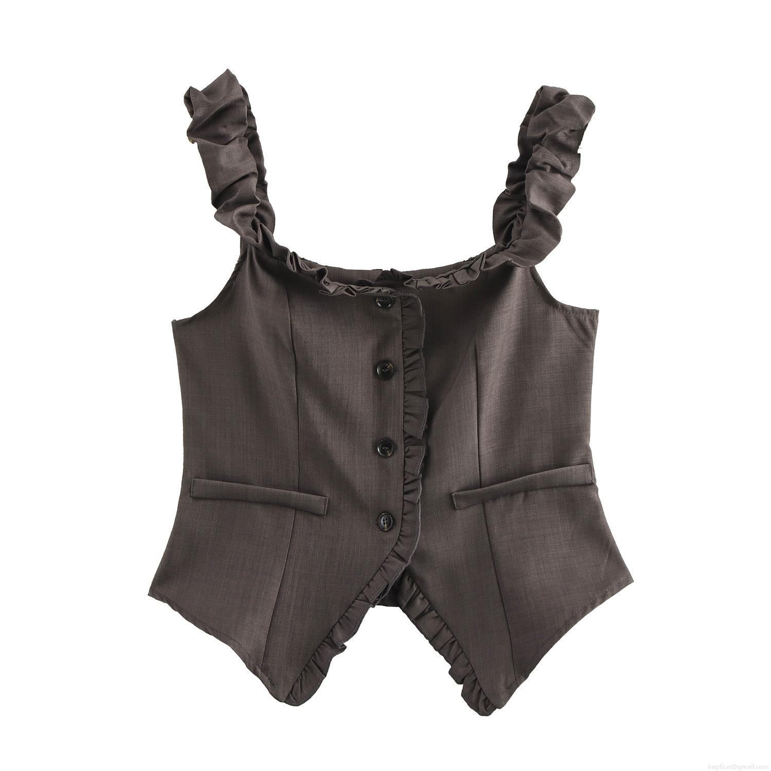 Solid Color, Wood Ear Edge, Buttons, Pleats