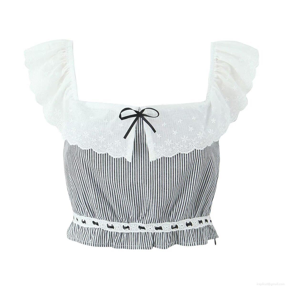 • Women's Sweet Striped Crop Top and Mini Skirt Set Cotton Lace Patchwork Off Shoulder Two Piece Outfits Summer Casual Beachwear