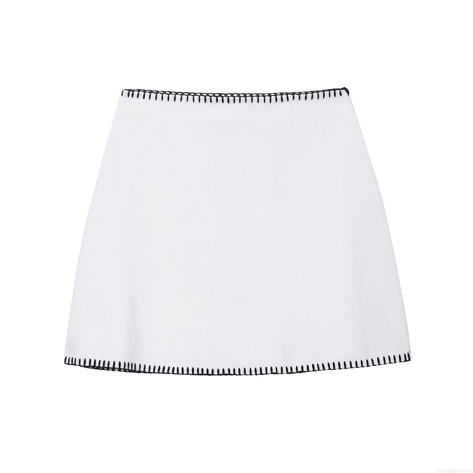 Women's Three-Piece Knit Set 100% Polyester Scalloped Trim Pullover Top Sleeveless Buttoned Vest And Mini Skirt Contrast Color Street Style Outfit
