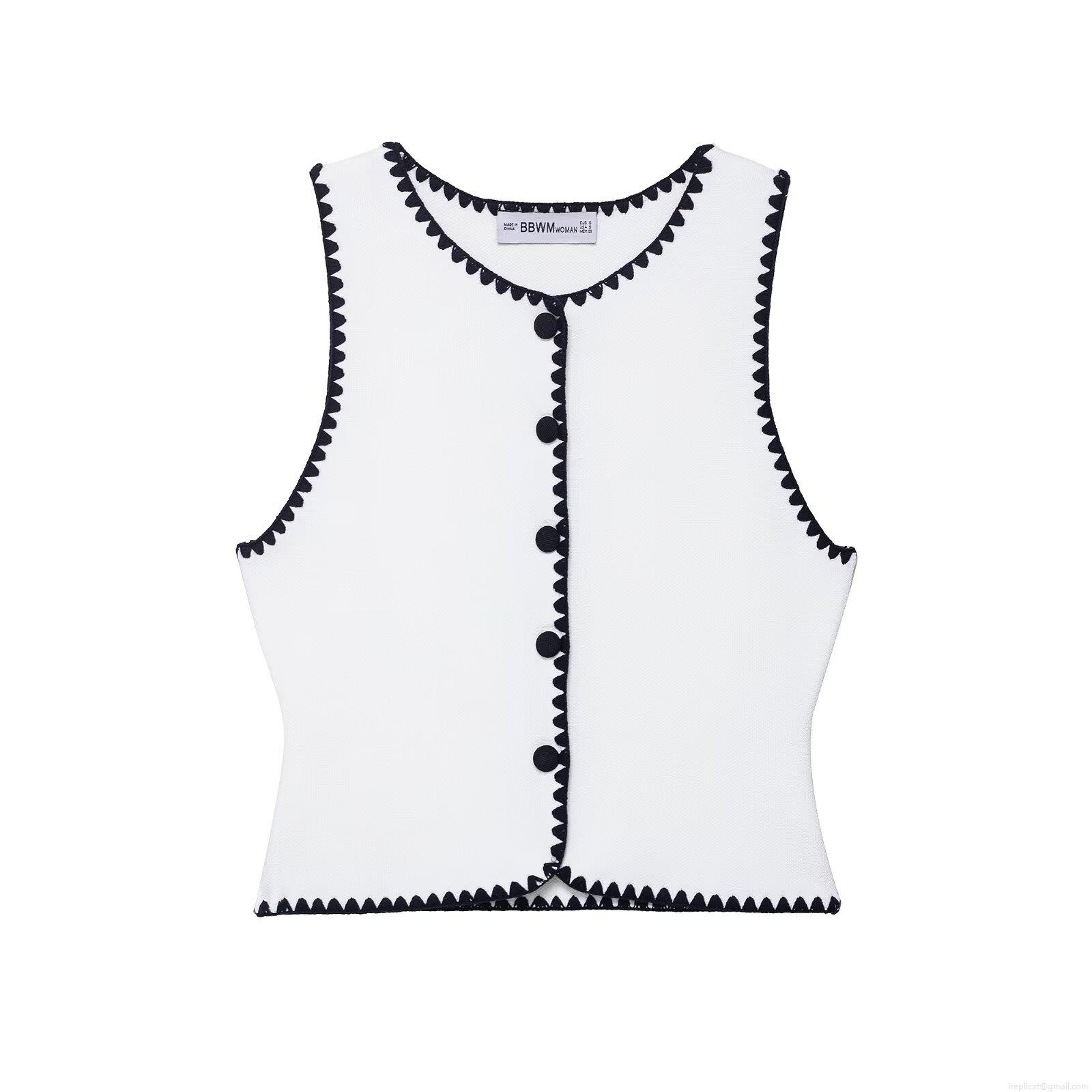• Women's Three-Piece Knit Set 100% Polyester Scalloped Trim Pullover Top Sleeveless Buttoned Vest And Mini Skirt Contrast Color Street Style Outfit