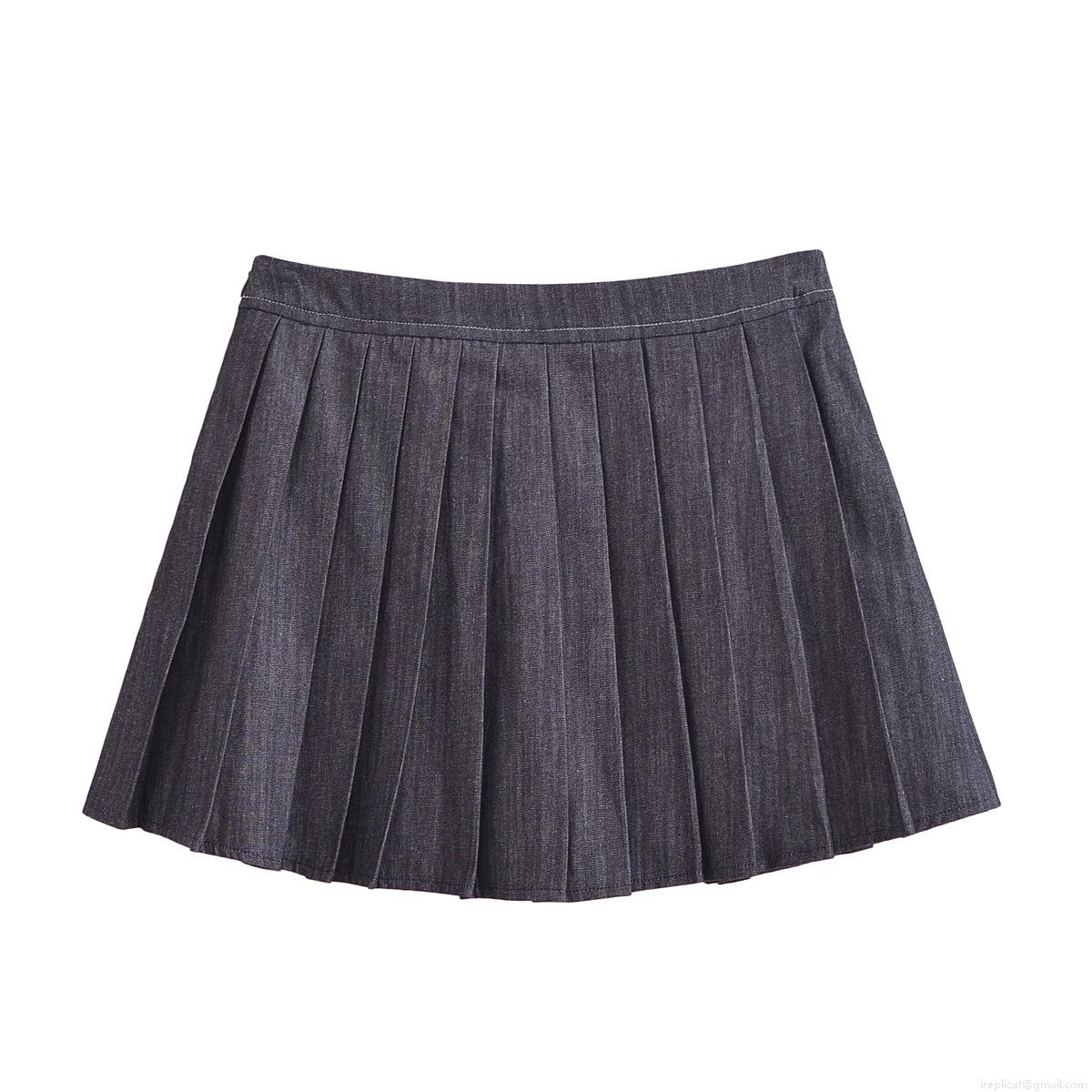 Women's Two Piece Denim Set Casual Bomber Jacket With Metal Zip Contrast Stitch And High Waist Pleated Mini Skirt Streetwear Fashion Navy Blue Outfit For Spring Fall