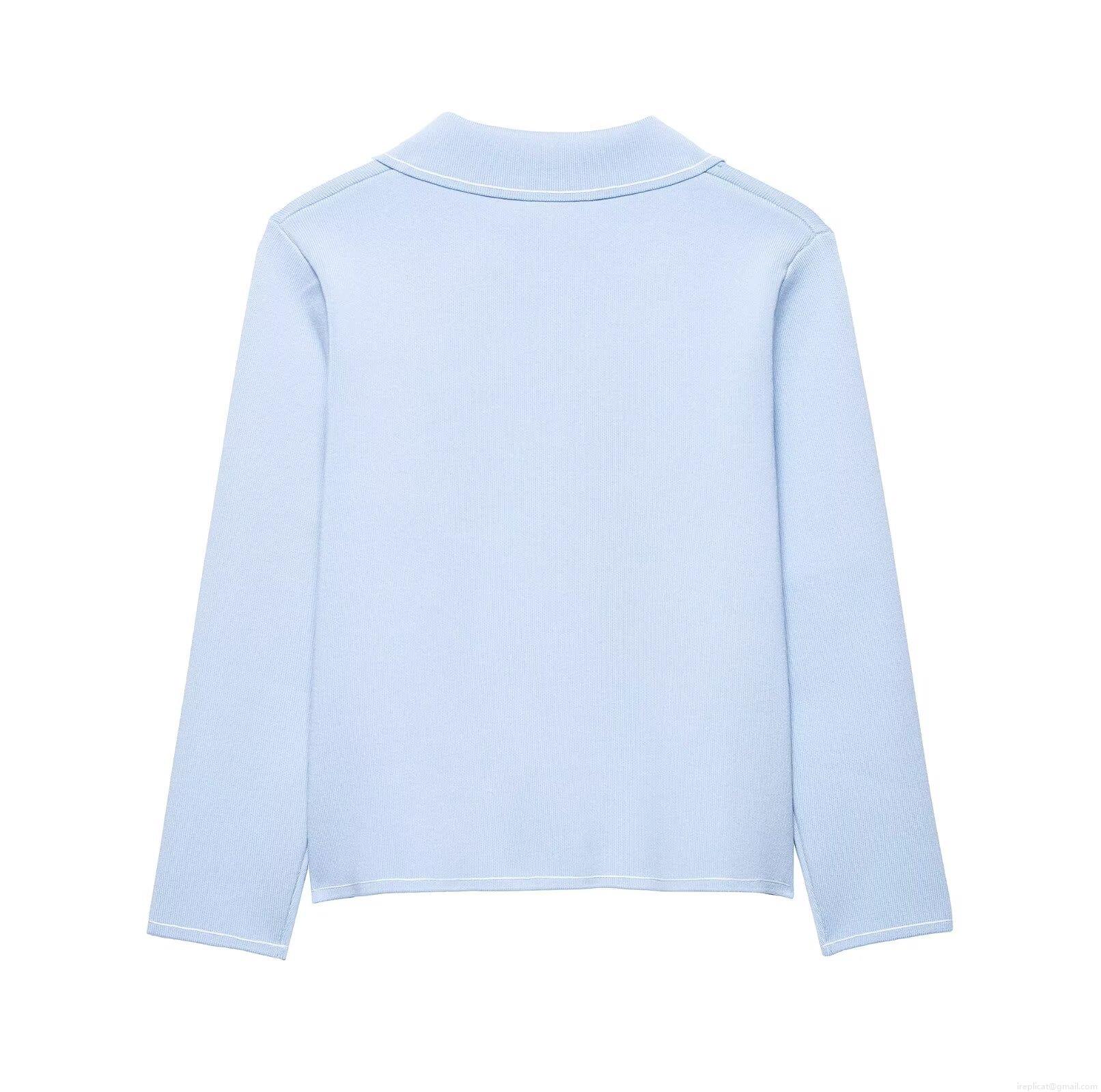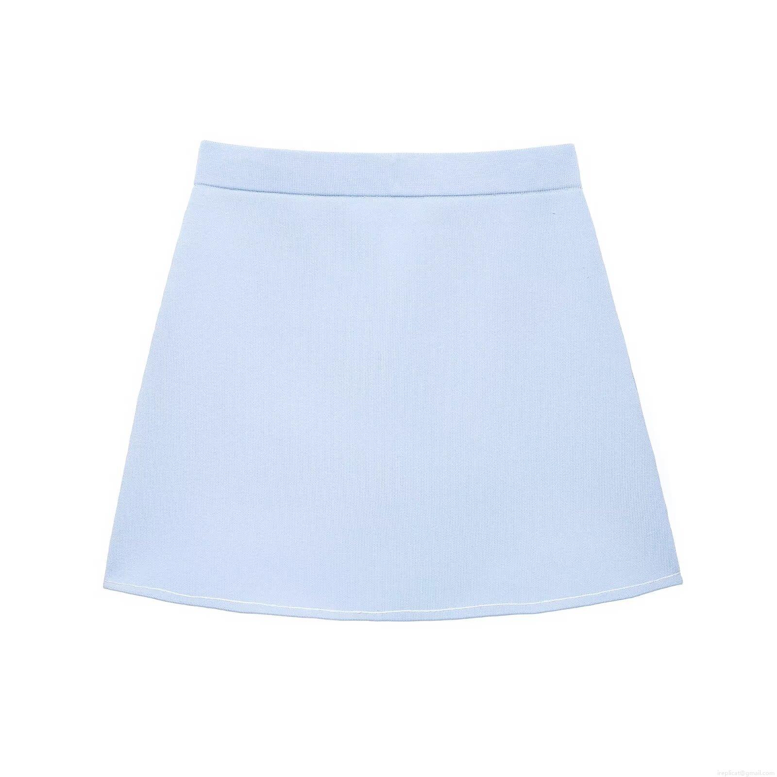 Women's Two Piece Knitted Skirt Set Contrast Trim Button Front Long Sleeve Jacket And High Waist A-Line Mini Skirt Light Blue 2025 Summer Fashion Co-ords Streetwear