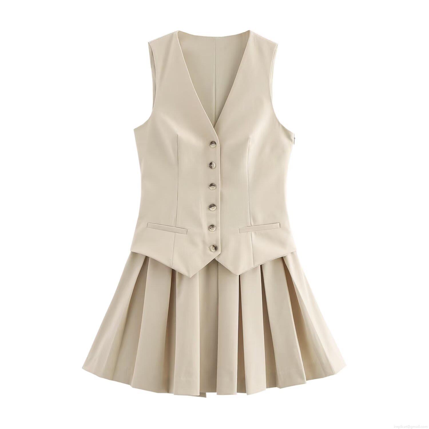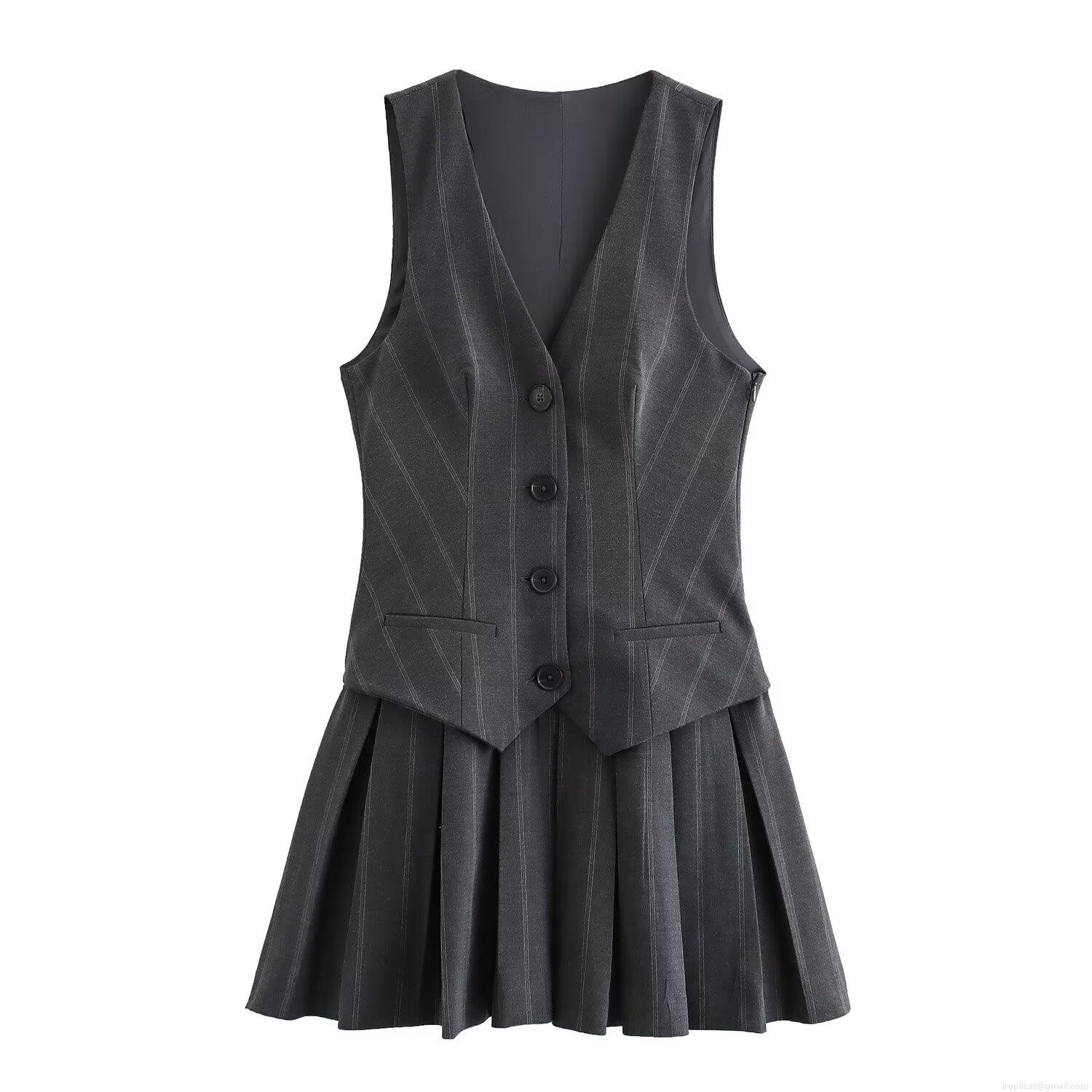 • Women's Two Piece Outfits Suit Vest and Pleated Mini Skirt Set Sleeveless V Neck Button Down Striped Waistcoat Academic Style Casual Office Wear Skirt Suit