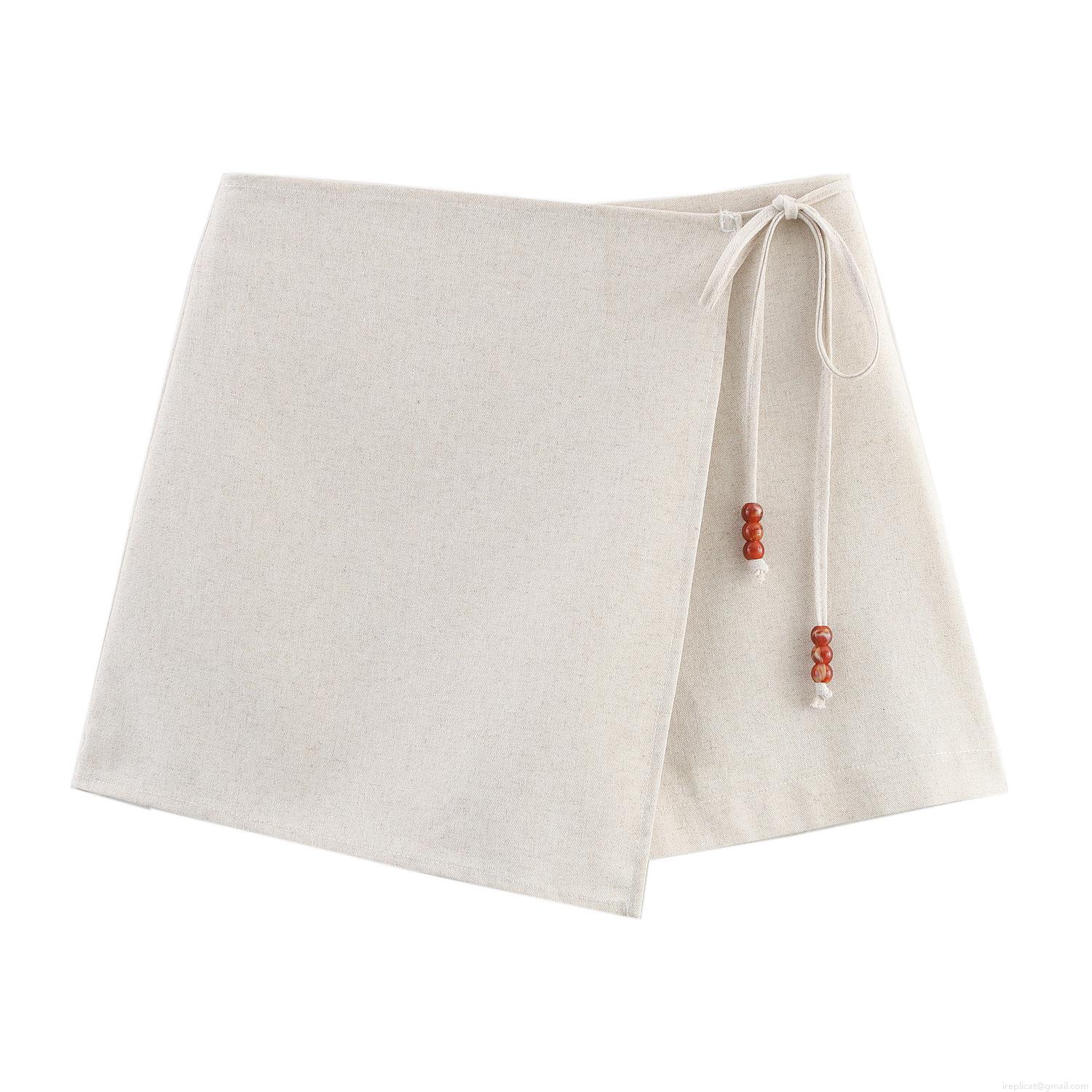 • Women's Two Piece Outfits V Neck Tie Front Vest And Wrap Skirt Set Linen Like Cotton Blend Beaded Detail Summer Vacation Bohemian Casual Suit For Women