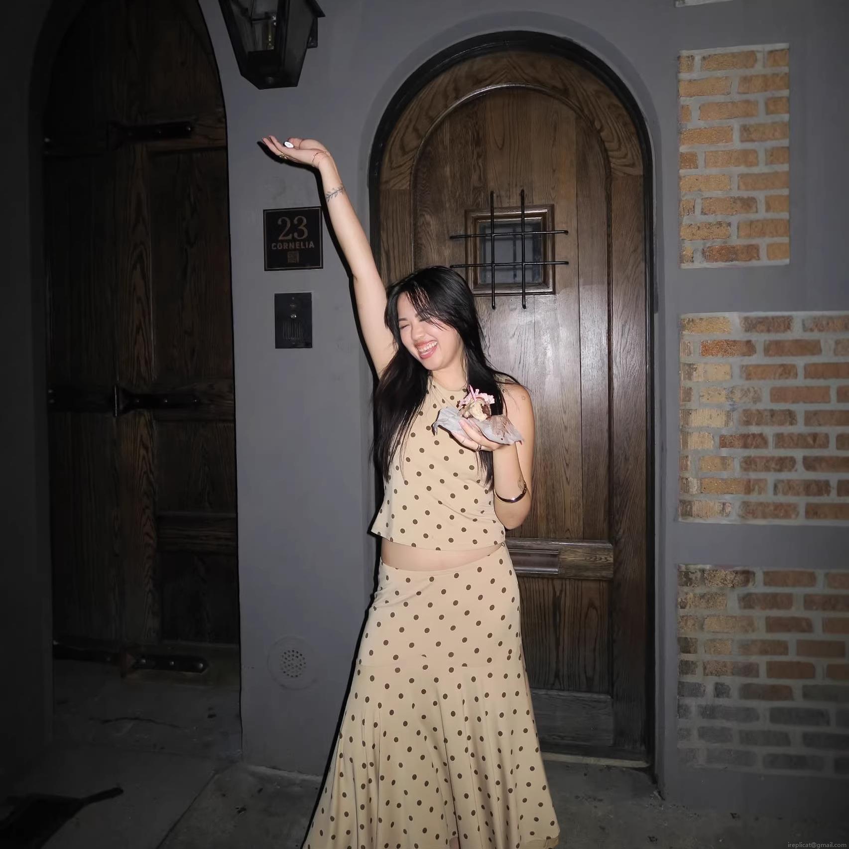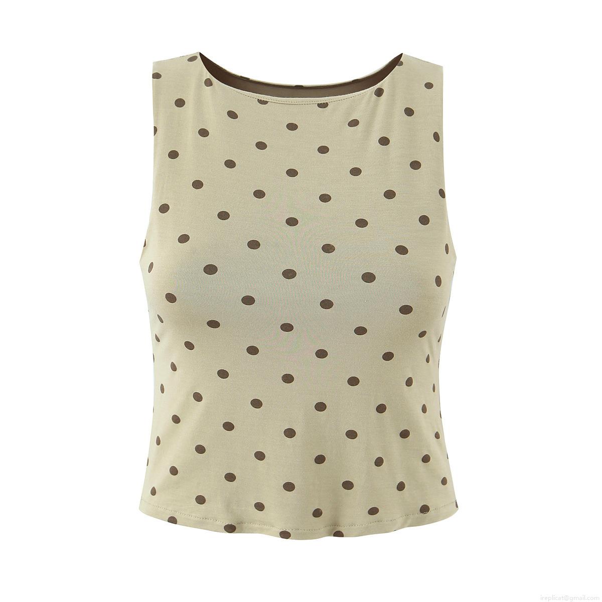 • Women's Two Piece Polka Dot Outfits Cotton Blend Round Neck Sleeveless Tank Top And High Waist Irregular Hem Midi Skirt Set Summer Casual Streetwear