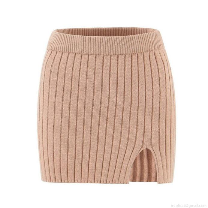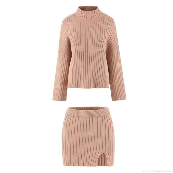 • Women's Two Piece Ribbed Knit Skirt Set High Neck Long Sleeve Sweater And Side Slit Mini Skirt Sexy Slim Fit Knitwear Co-ords Outfits