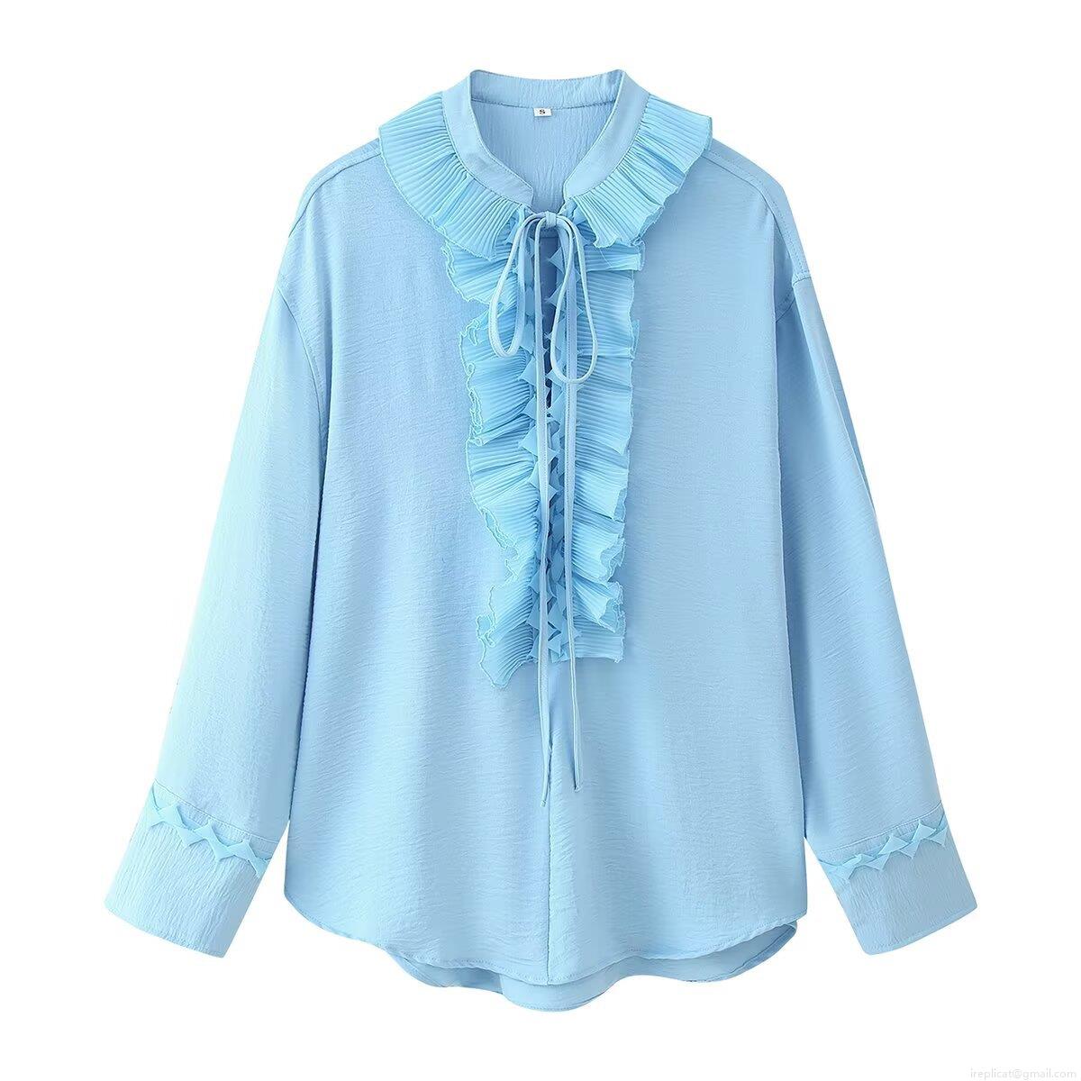• Women's Two Piece Set Chiffon Ruffle V-Neck Long Sleeve Shirt and Drawstring A-Line Maxi Skirt Casual Summer Outfits Elegant Streetwear Suit
