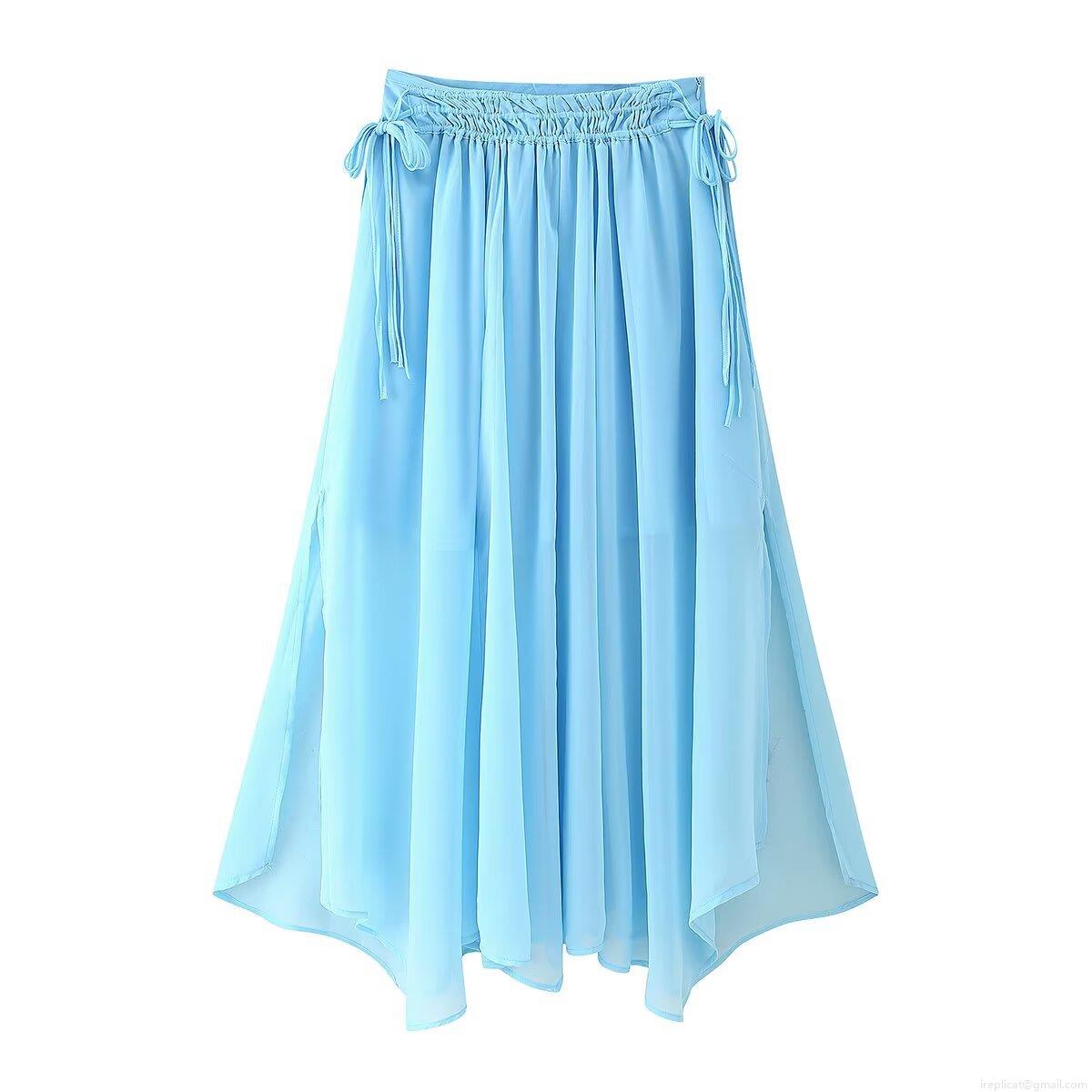 Solid Color, Pleats, Ruffles, Drawstring, Lace, Side Fork
