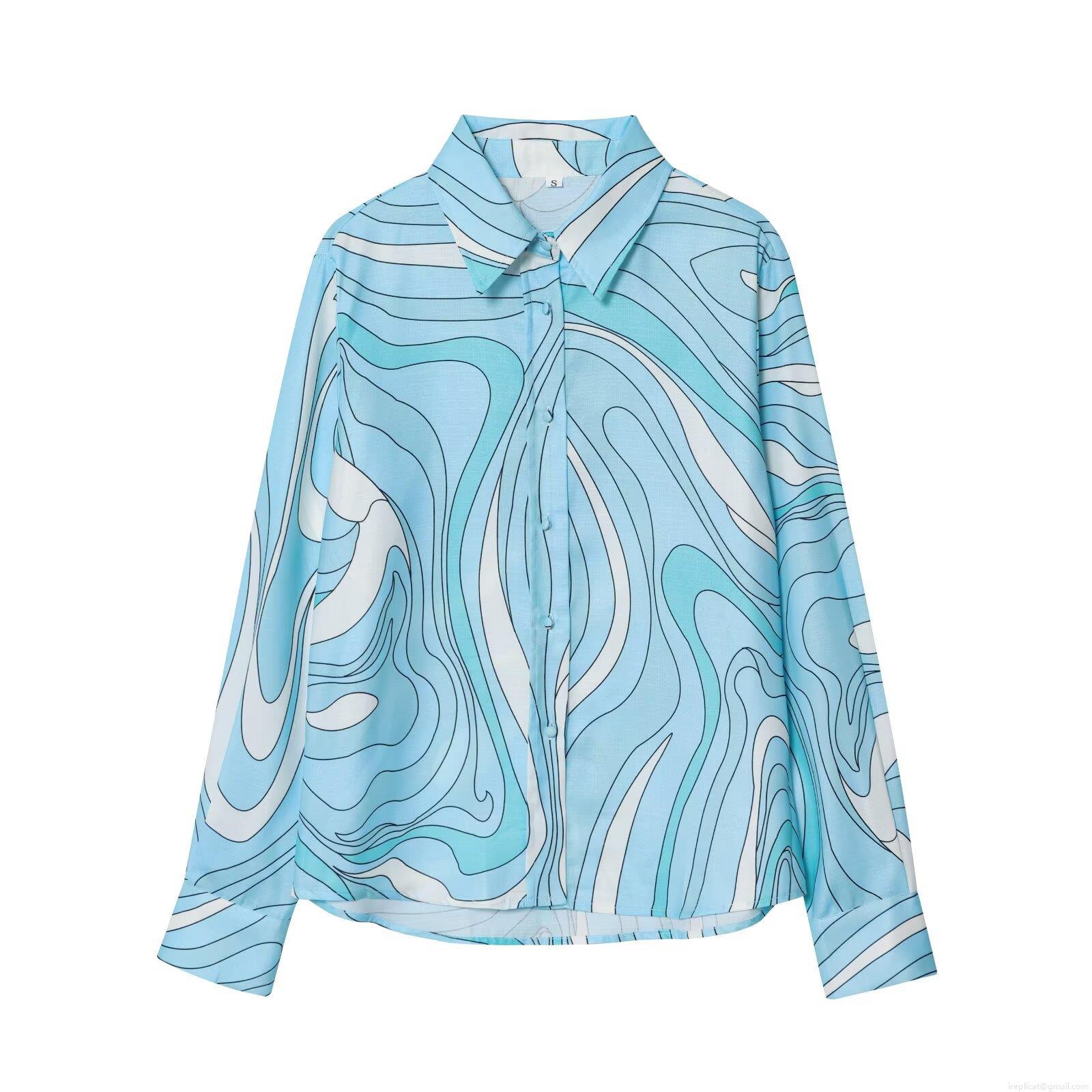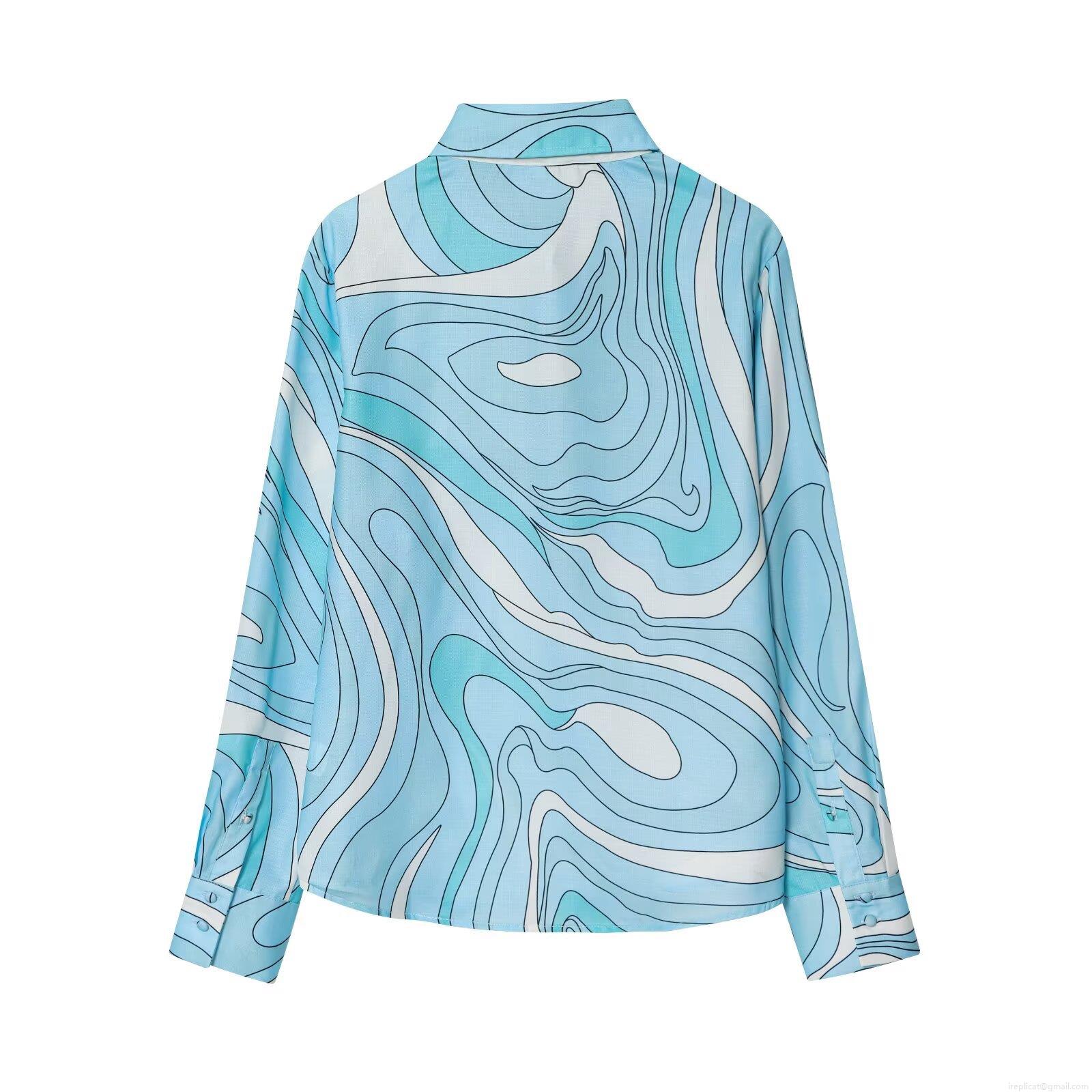 Women's Two Piece Set Long Sleeve Print Shirt and High Waist Fishtail Midi Skirt Abstract Marble Swirl Pattern Streetwear Casual Outfit for Women