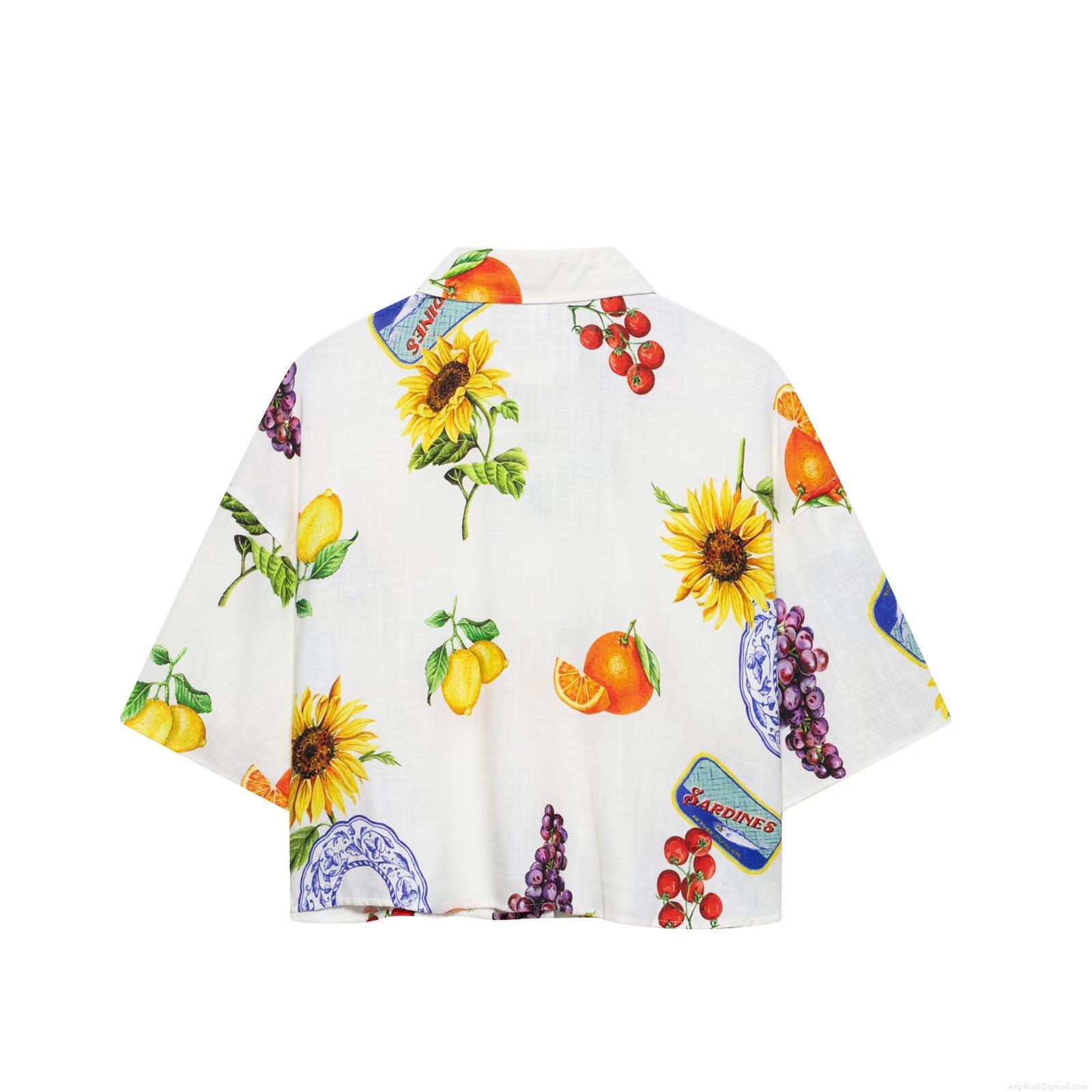 Women's Two Piece Set Sicilian Fruit Print Short Sleeve Shirt and A-Line Mini Skirt Summer Beach Holiday Streetwear 100% Polyester Outfits
