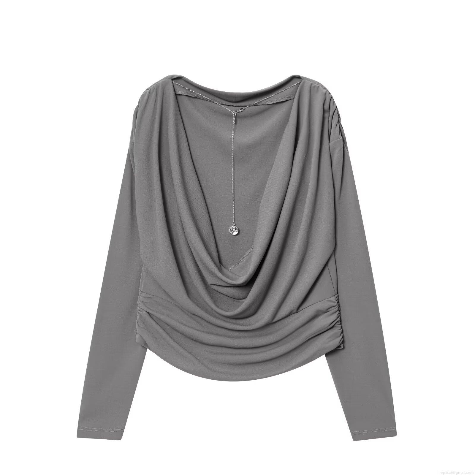 Solid Color, Pleated Decoration, Short Design, Pleated Collar, Side Pleats