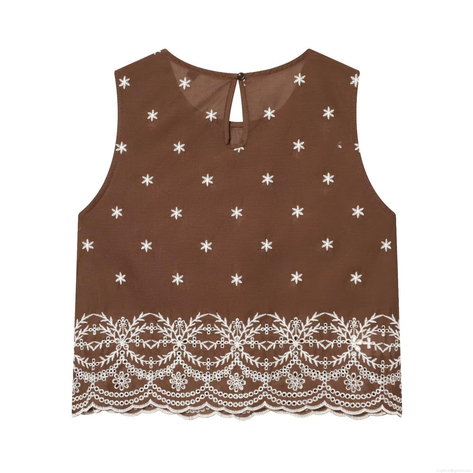 • Women's Two Piece Skirt Set Cotton Blend Sleeveless Hollow Out Embroidery Top And Elastic High Waist Midi Skirt Casual Vacation Boho Outfits