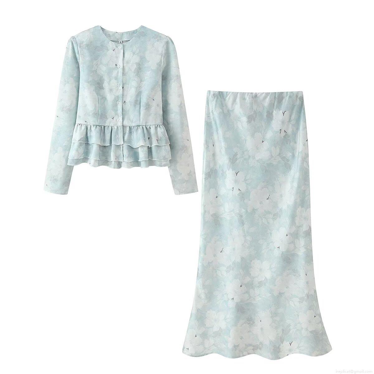 • Women's Two Piece Skirt Set Floral Print Peplum Waist Long Sleeve Top And Elastic High Waist Long Skirt Elegant Chiffon Style Outfits For Women Casual Vacation Party Wear