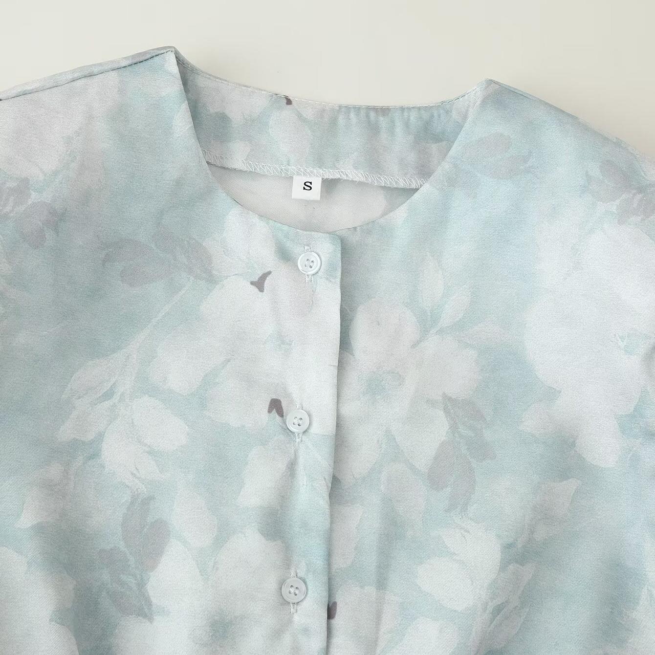 Floral Pattern, Ruffles, Flowers, Waist shaping, Printing, Single-breasted