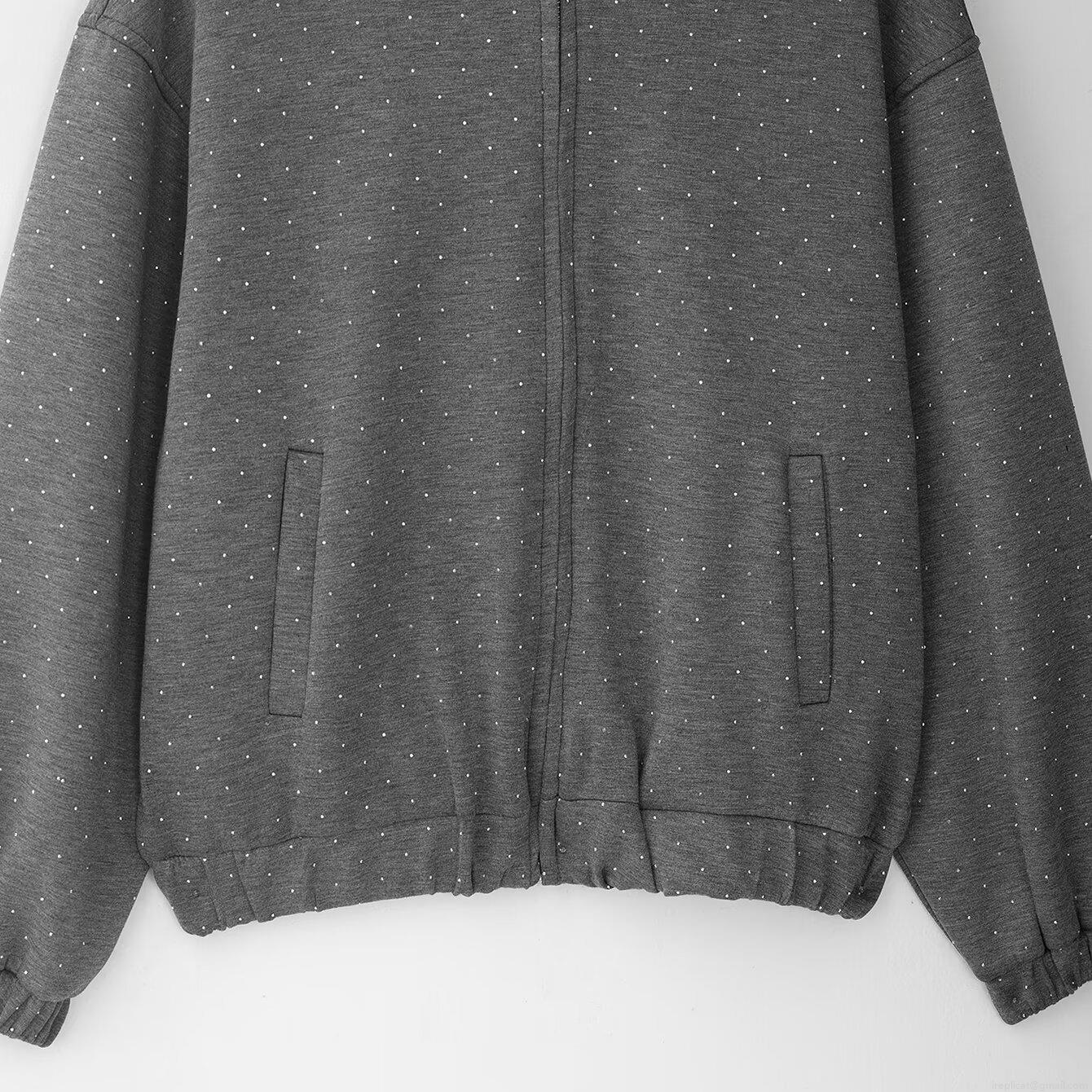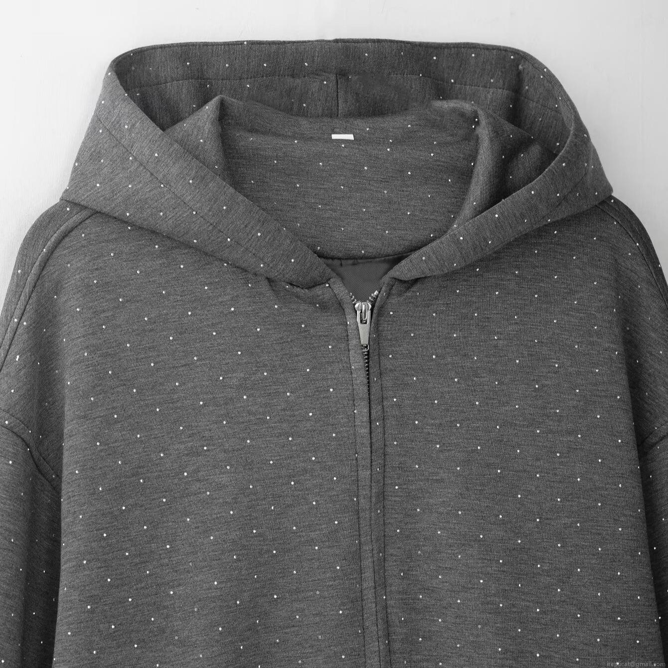 • Women's Two Piece Skirt Set Polyester Sparkling Rhinestone Polka Dot Zip Up Hooded Sweatshirt And Mini Bubble Skirt Casual Fashion Daily Outfits For Women