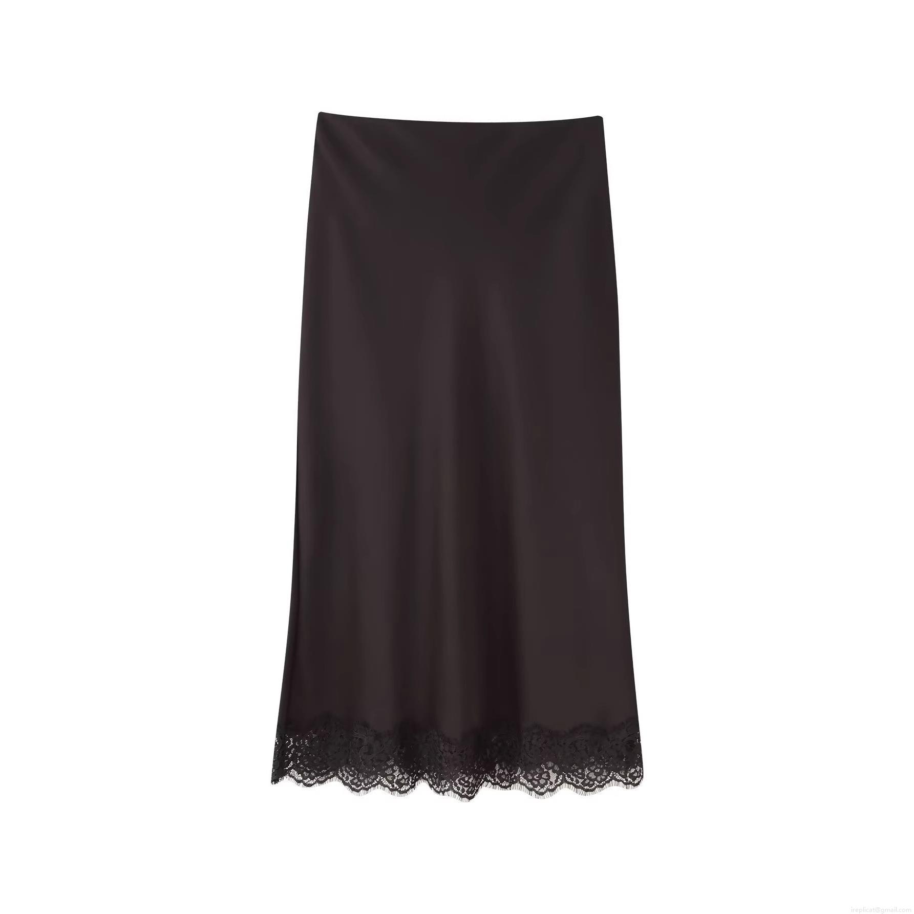 Women's Two Piece Skirt Set Satin Lace Camisole Top And Maxi Skirt Sexy Sleeveless Nightwear Pajamas Set Elegant Streetwear For Lady Women