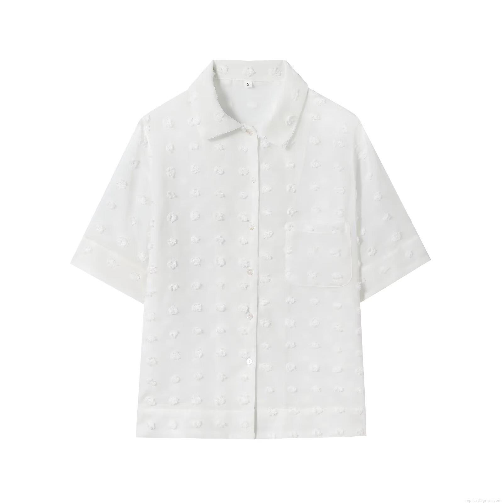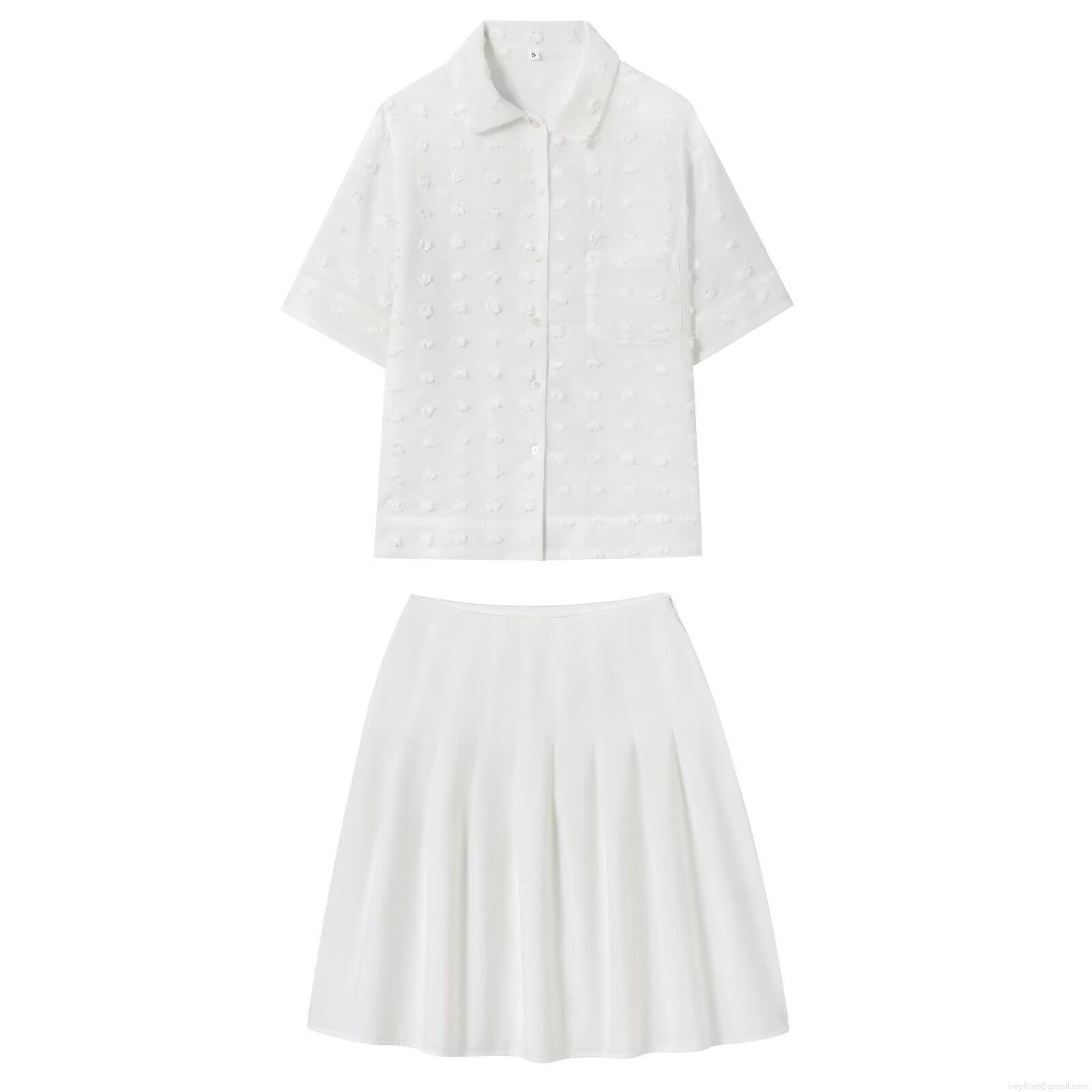• Women's Two Piece Skirt Set Short Sleeve Swiss Dot Button Down Shirt And High Waist Pleated Mini Skirt White Casual Streetwear Summer Autumn Outfit