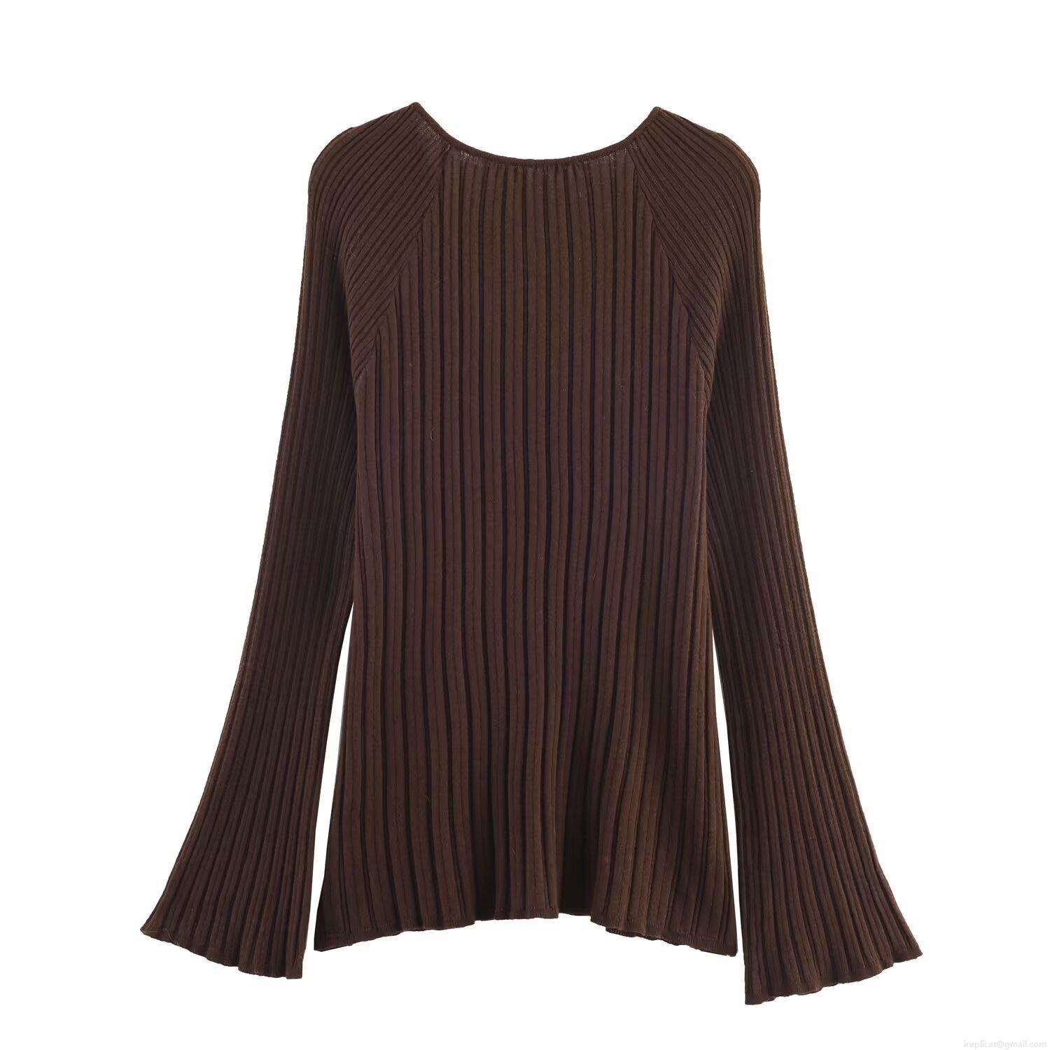 Solid Color, V-neck, Single-breasted, Ribbed Knit, Bell Sleeves, Pit Stripes