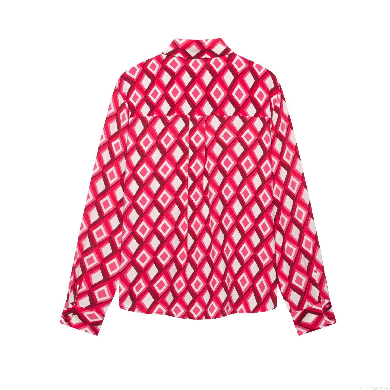 • Women's Two-Piece Set Geometric Rhombus Print Long Sleeve Lapel Shirt And Pleated Mini Skirt With Belt Casual Streetwear 100% Polyester Outfit For Summer Vacation