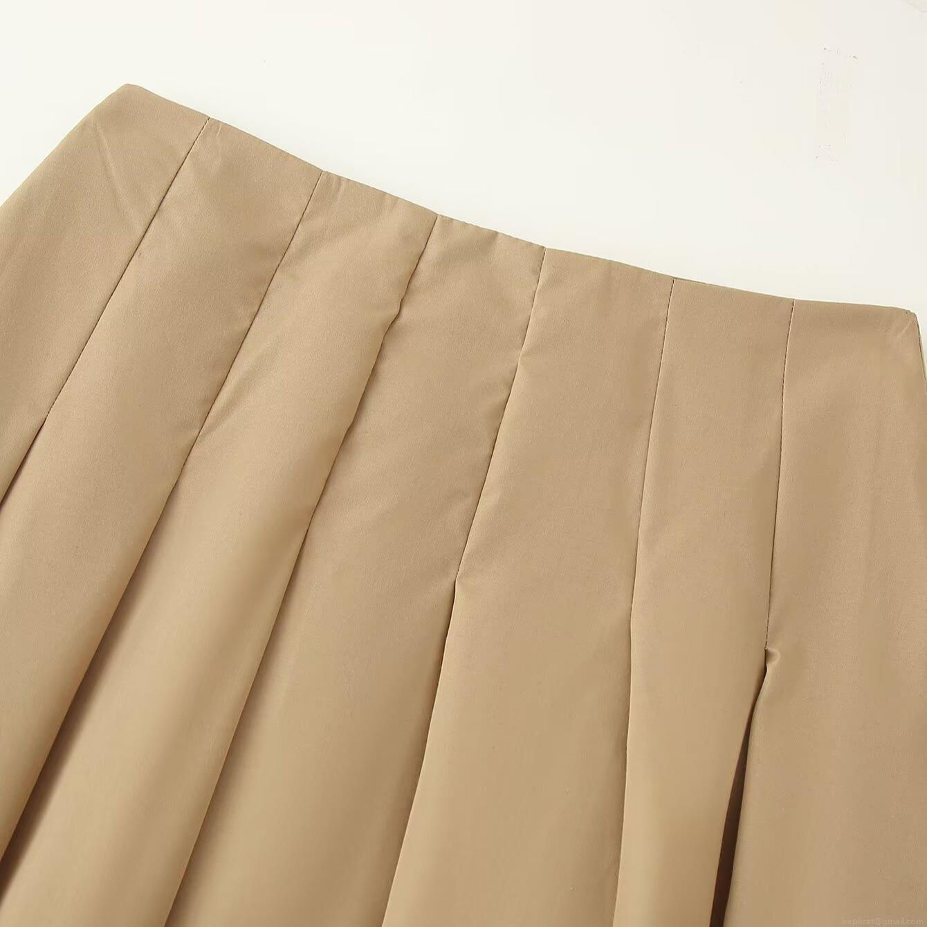 Women's Two-Piece Skirt Set Summer Short Sleeve Zipper Top and Pleated Midi Skirt Polyester Spandex Casual Office Minimalist Lady Summer Outfit