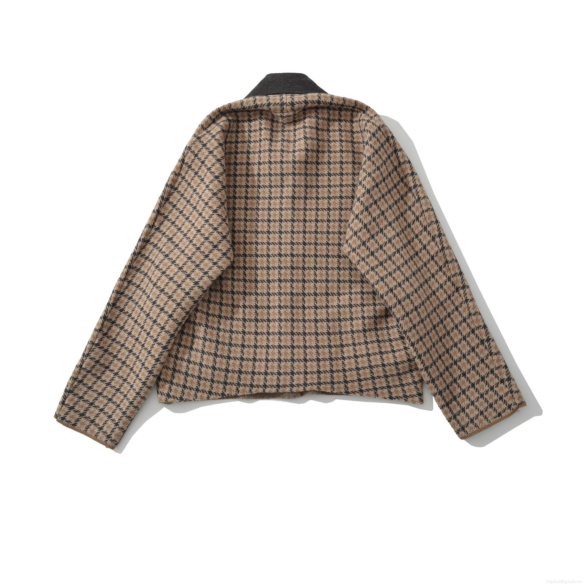 • Women's Vintage Houndstooth Plaid Jacket and Skirt Set Two-Piece Knit Lapel Button Up Coat and High Waist A-Line Mini Skirt Streetwear Outfit