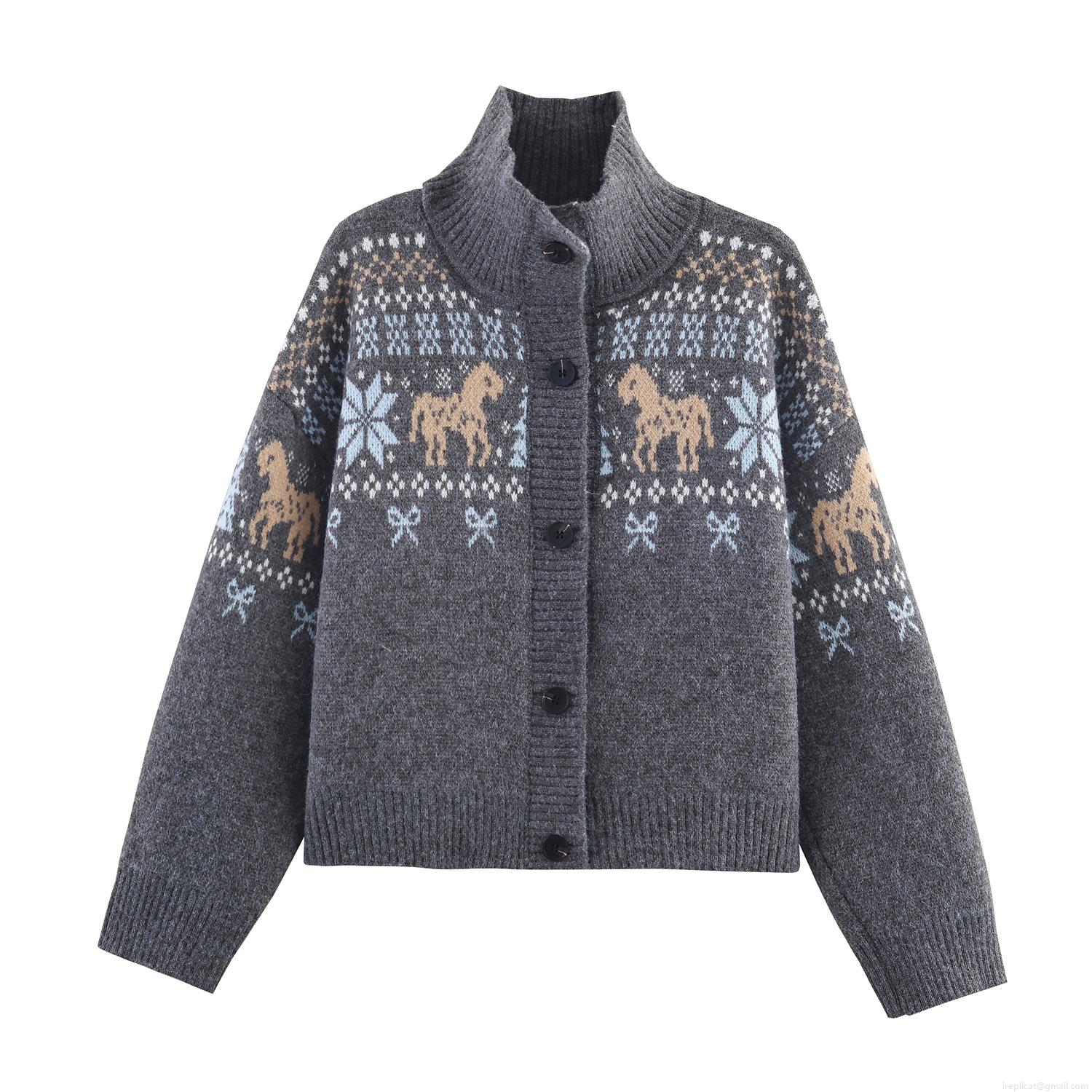 Horse, Bow, Jacquard, Snowflake, Buttons, Knitted Texture