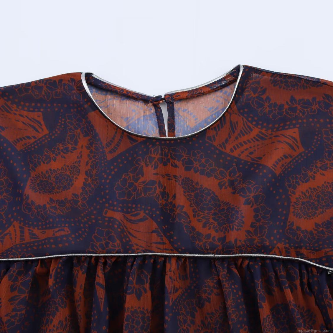Paisley, Forked, Paisley Print, Bell Sleeves, Silver Piping