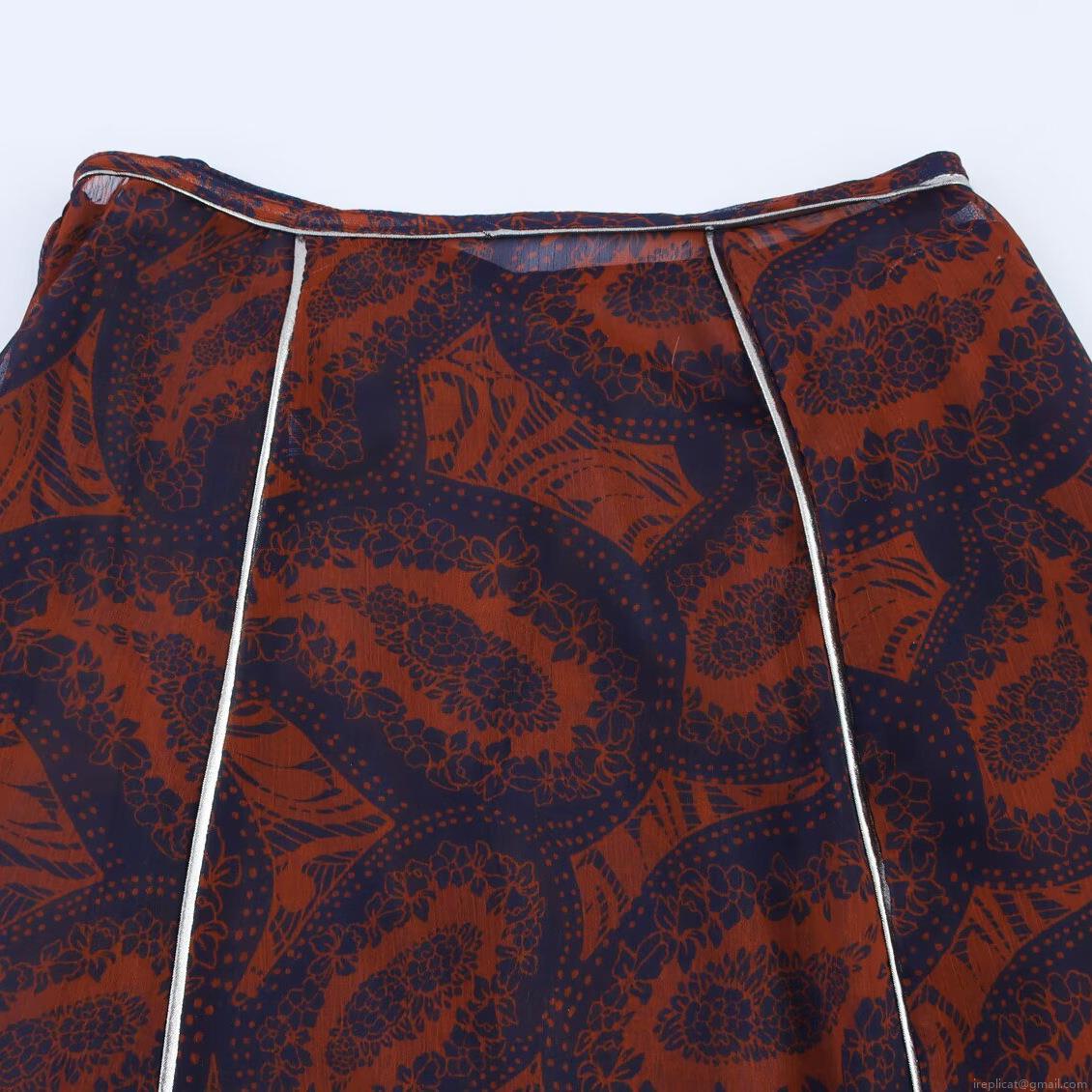 • Women's Vintage Paisley Print Polyester Spandex Skirt Set Flare Sleeve Round Neck Top And High Waist Midi Skirt Two Piece Outfits For Vacation Casual Wear