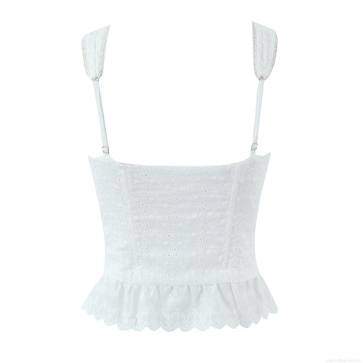 • Women's White Embroidery Broderie Anglaise Two-Piece Set Cotton Eyelet Sleeveless Corset Crop Top and Tiered Maxi Cake Skirt Outfit For Vacation Summer Party