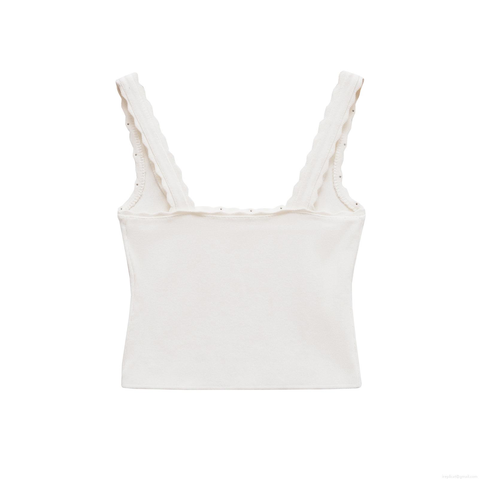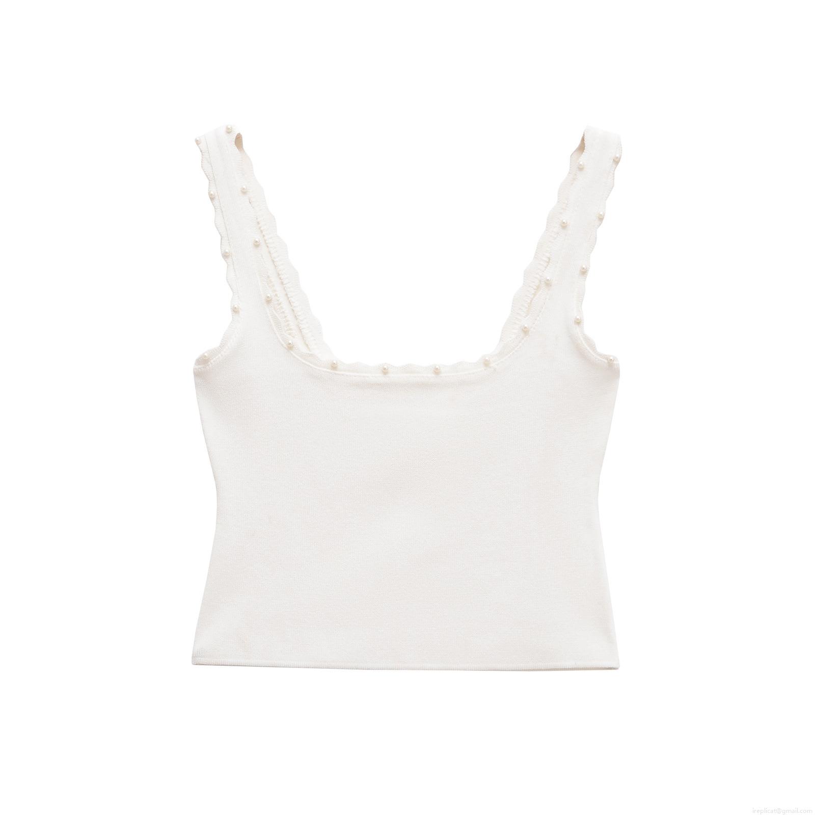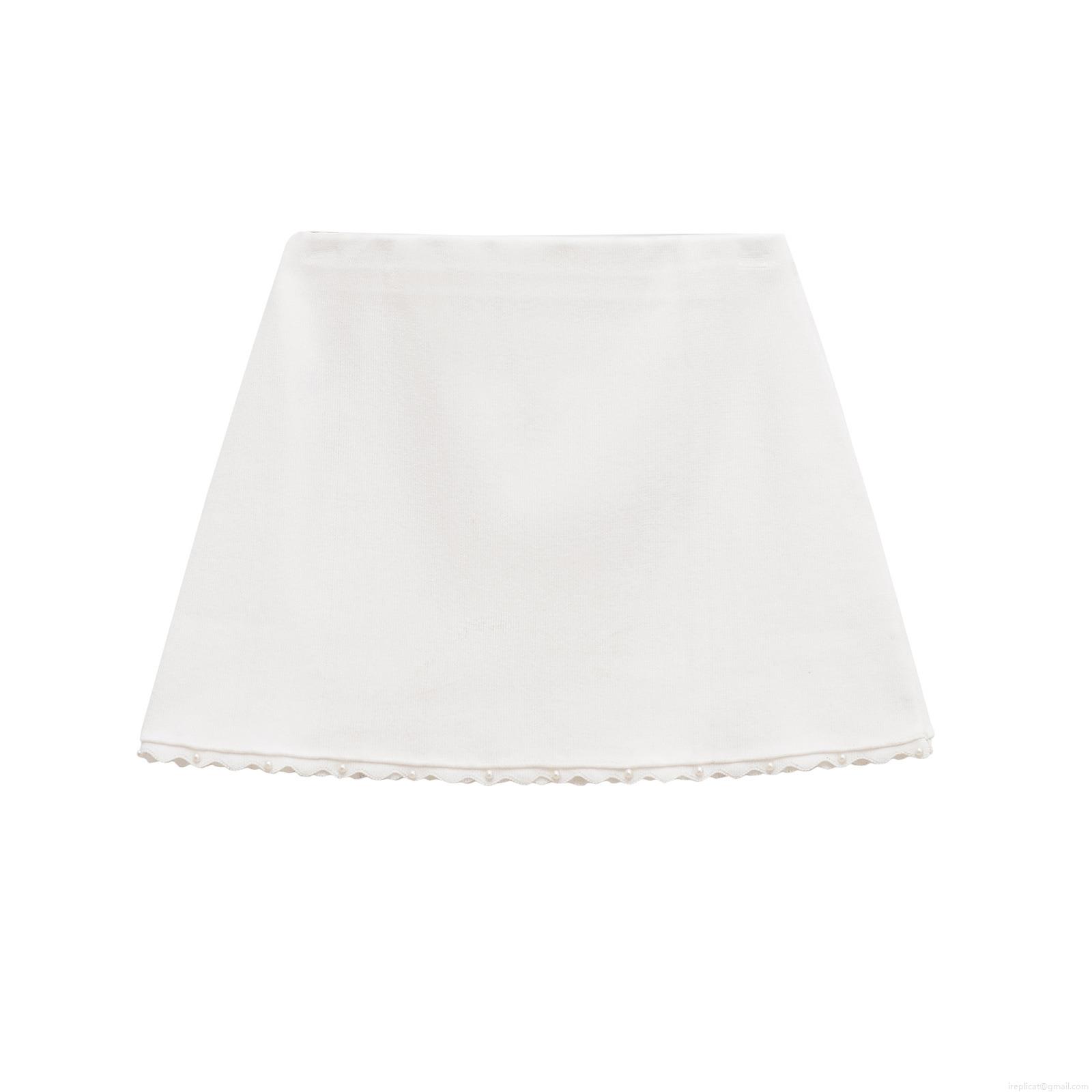 • Women's White Two Piece Skirt Set Knit Ribbed Cropped Cami Top and Pearl Trim Mini Skirt Sexy Summer Casual Streetwear Party Wear For Lady