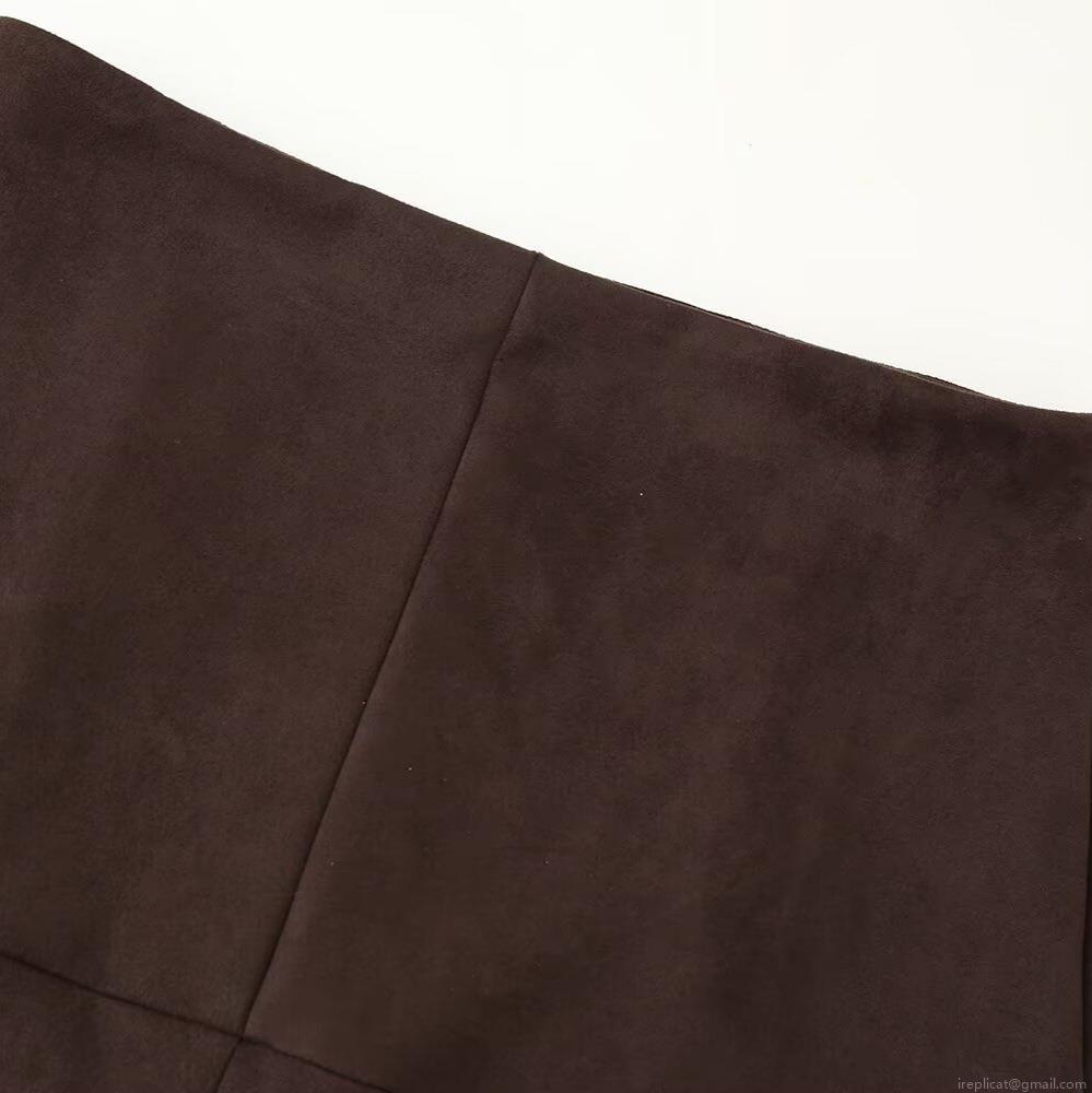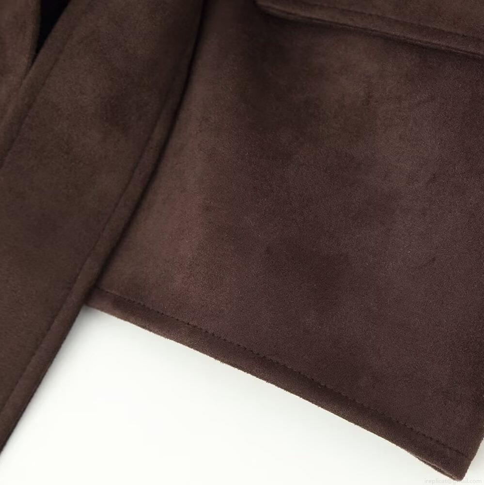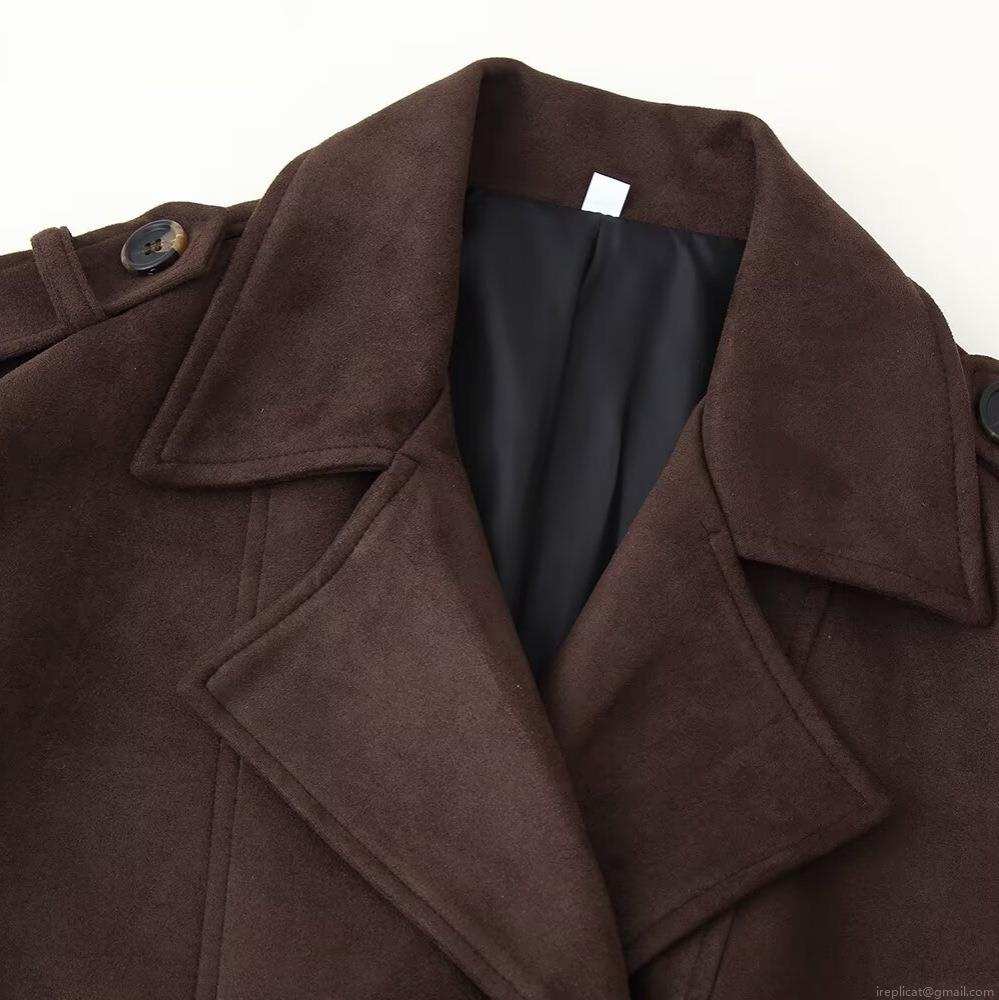 • Women's Winter Fashion Lapel Long Sleeve Suede Double Breasted Jacket And Midi Skirt Two Piece Set With Belt Solid Color Elegant Commuter Outfit
