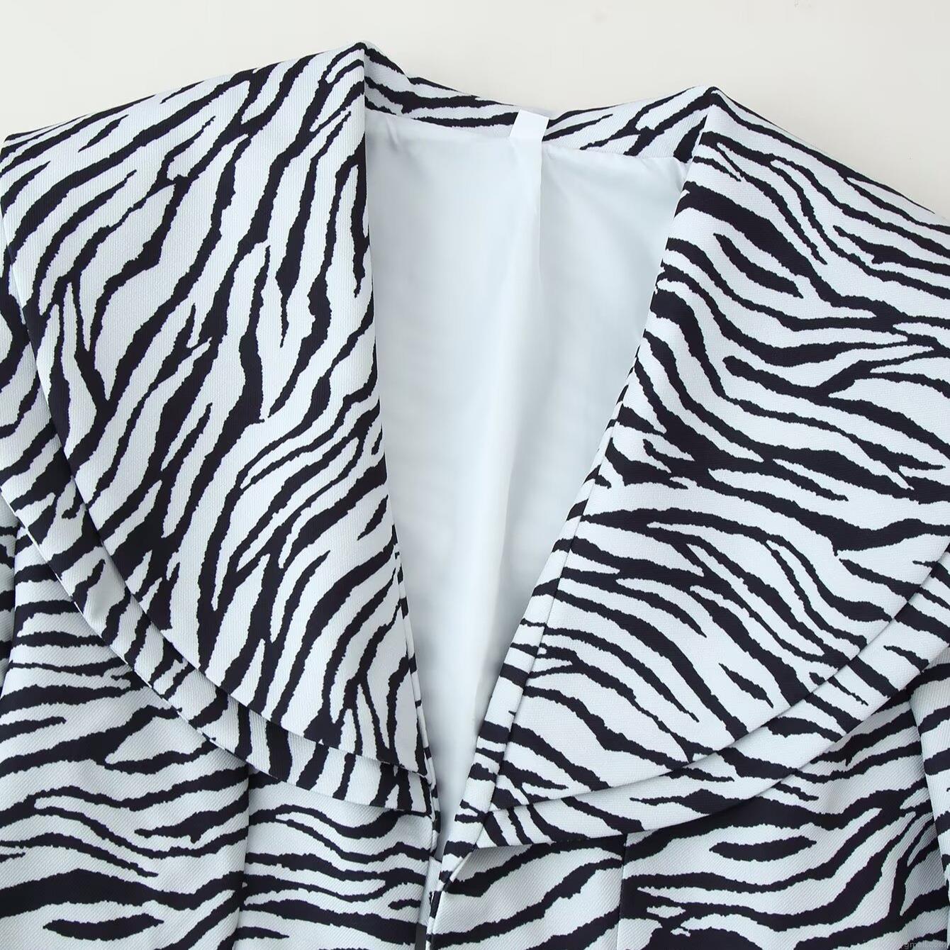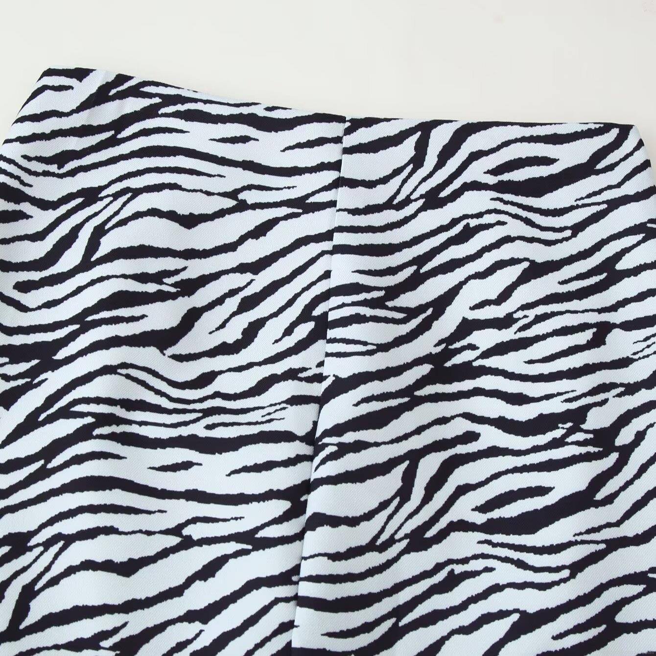 • Zebra Print Short Blazer Jacket And Split Mini Skirt Set Fashion Two Piece Outfits For Women Elegant Office Lady Business Casual Suit