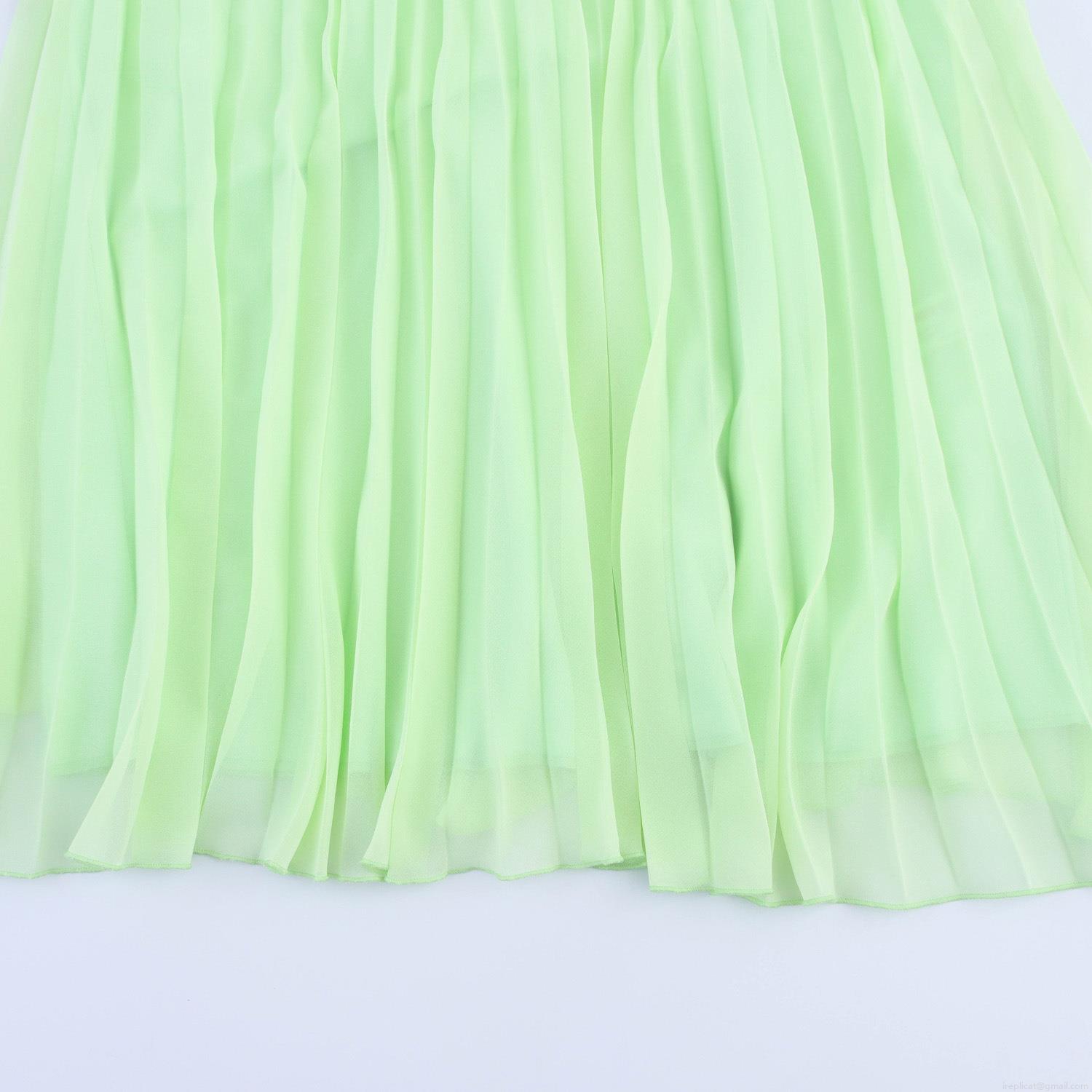 • Elegant Mint Green Pleated Maxi Skirt Chiffon High Waist A-Line Long Skirt For Women Vacation Summer Beach Party Solid Color