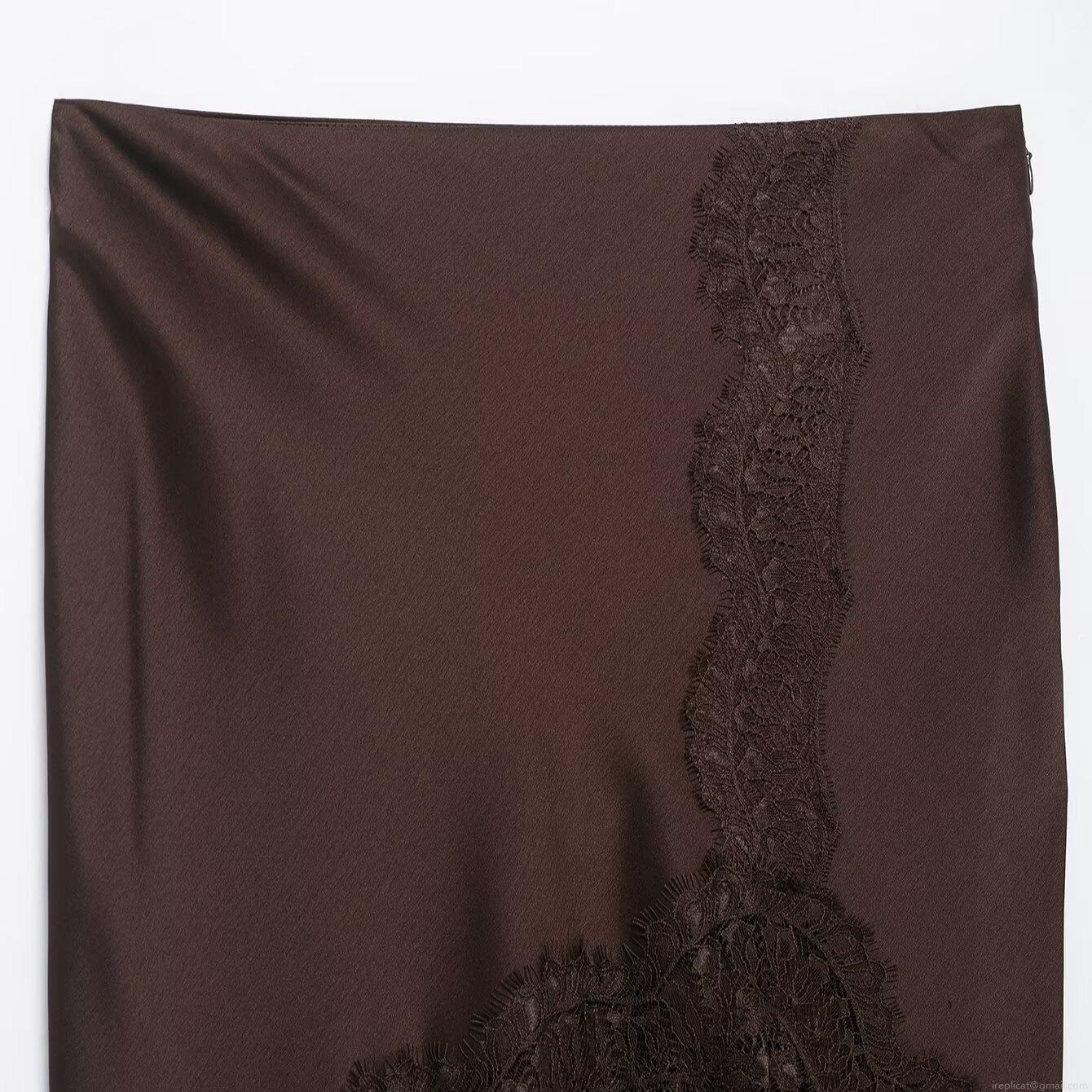 Elegant Satin Lace Patchwork Fishtail Midi Skirt High Waist Solid Color Slim Fit Long Skirt For Women Winter Office Lady
