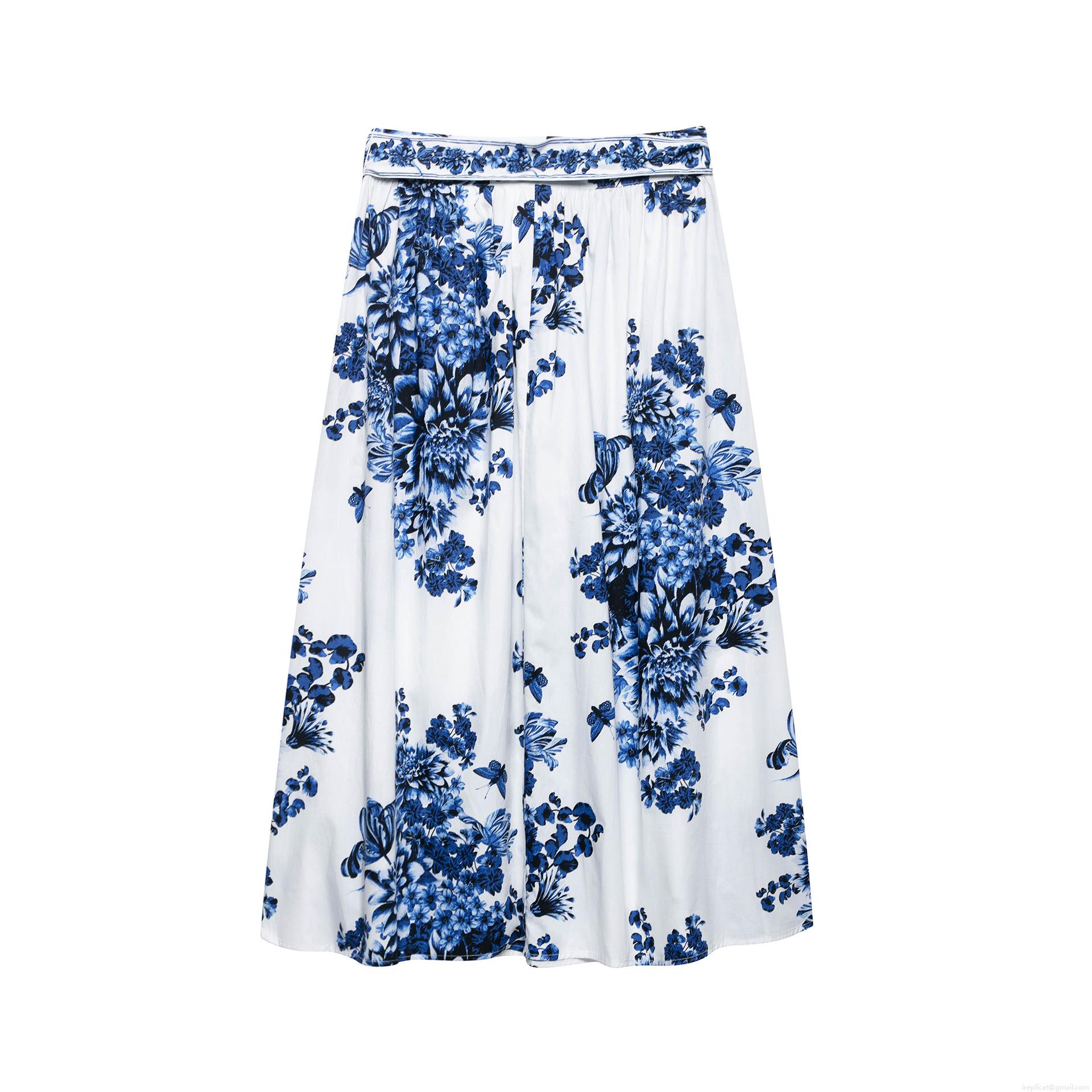 • Elegant Women's Blue and White Floral Butterfly Print High Waist A-Line Midi Skirt Fashion Polyester Tie Waist Woven Skirt for Summer Vacation Streetwear