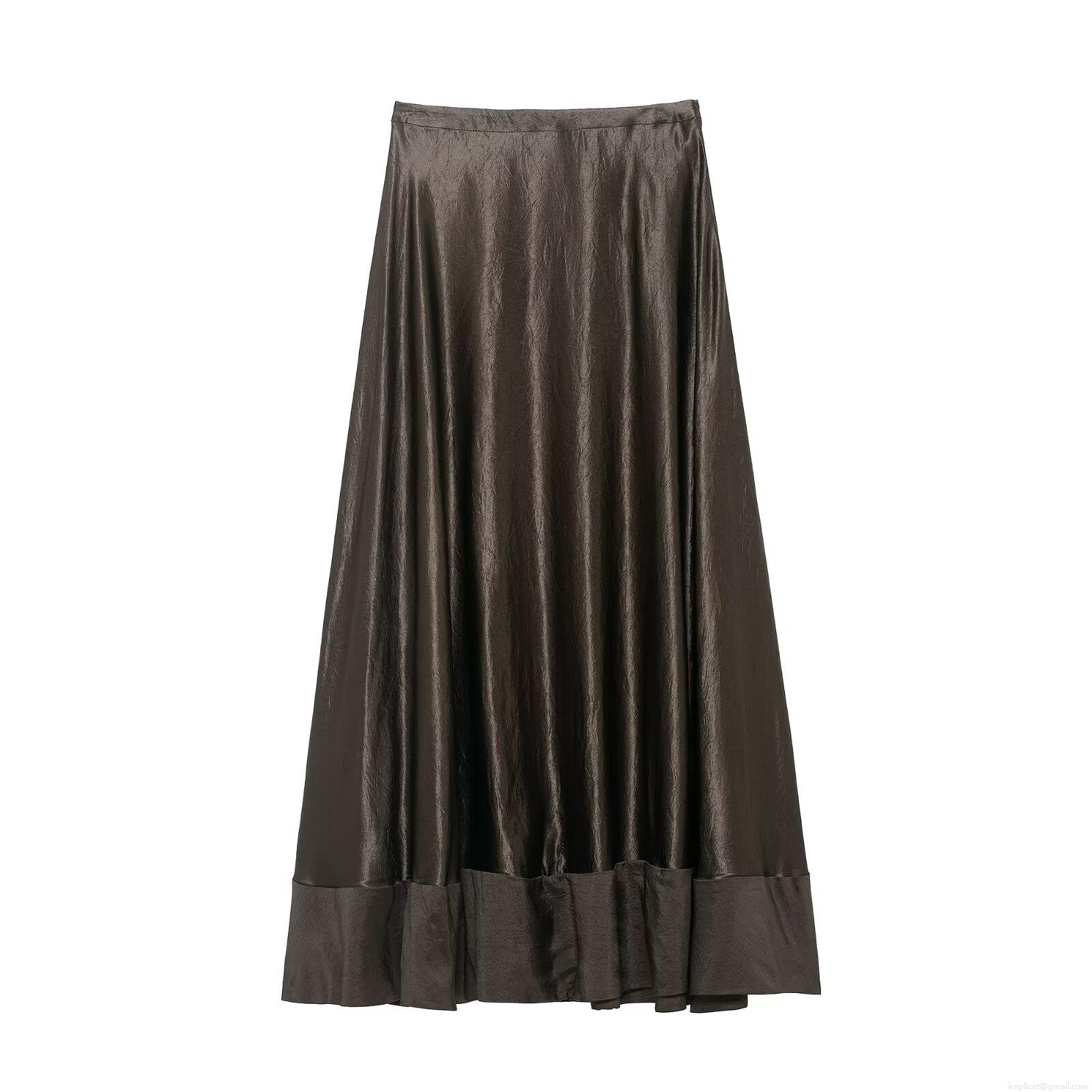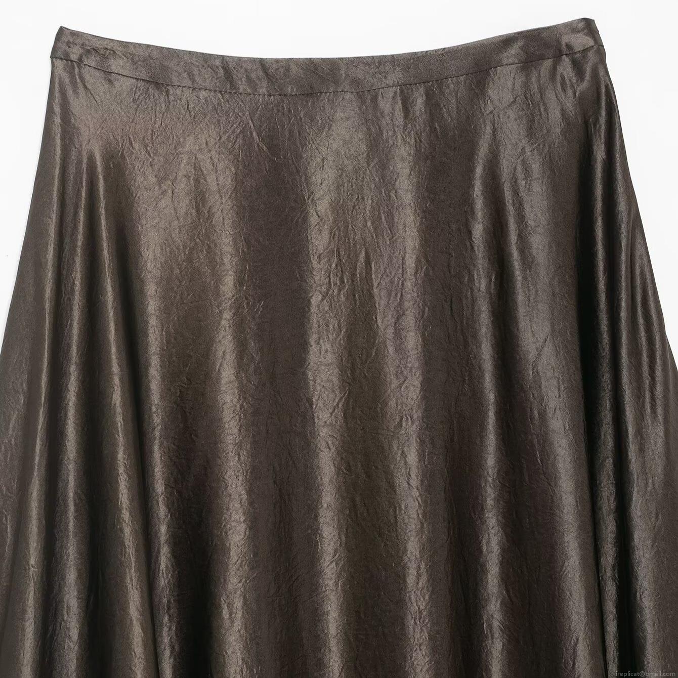 • Elegant Women's Satin A-Line Midi Skirt High Waist Metallic Luster Pleated Big Swing Long Skirt For Party Commute Daily Vintage Style