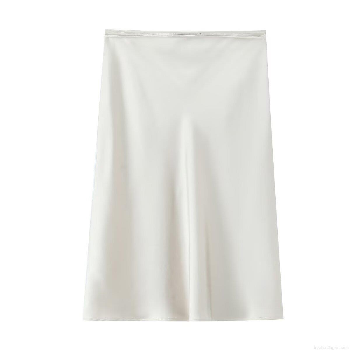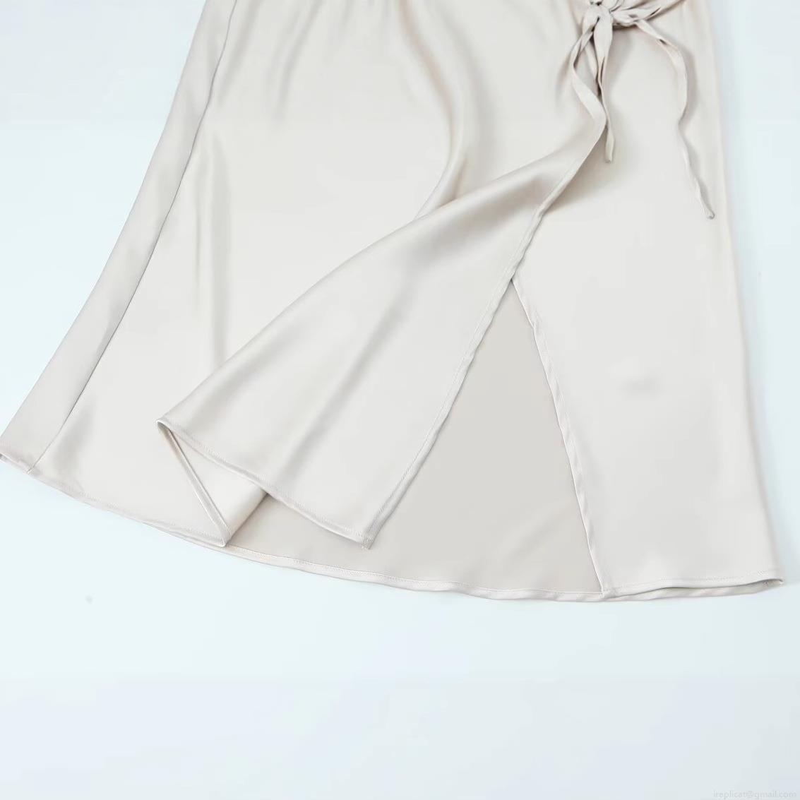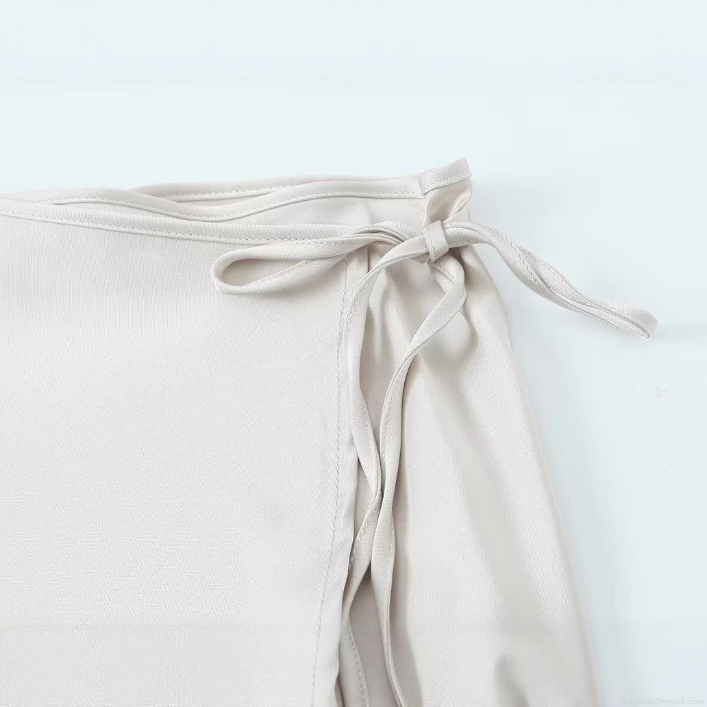 • Elegant Women's Satin Midi A-Line Skirt Summer Solid Color High Waist Tie Up Wrap Skirt For Streetwear Party Chic Wear
