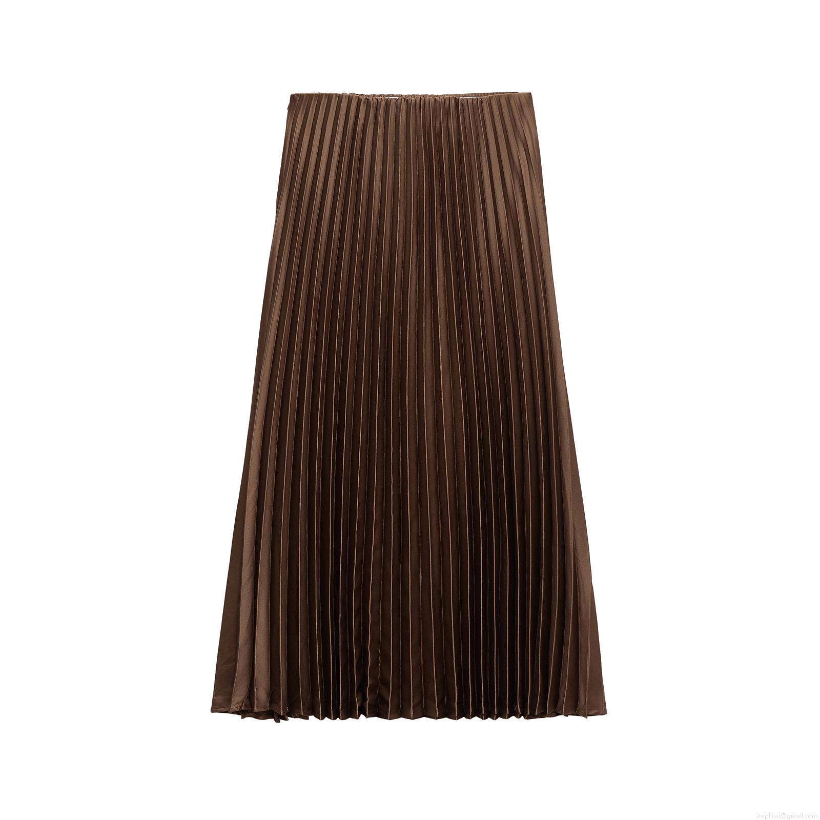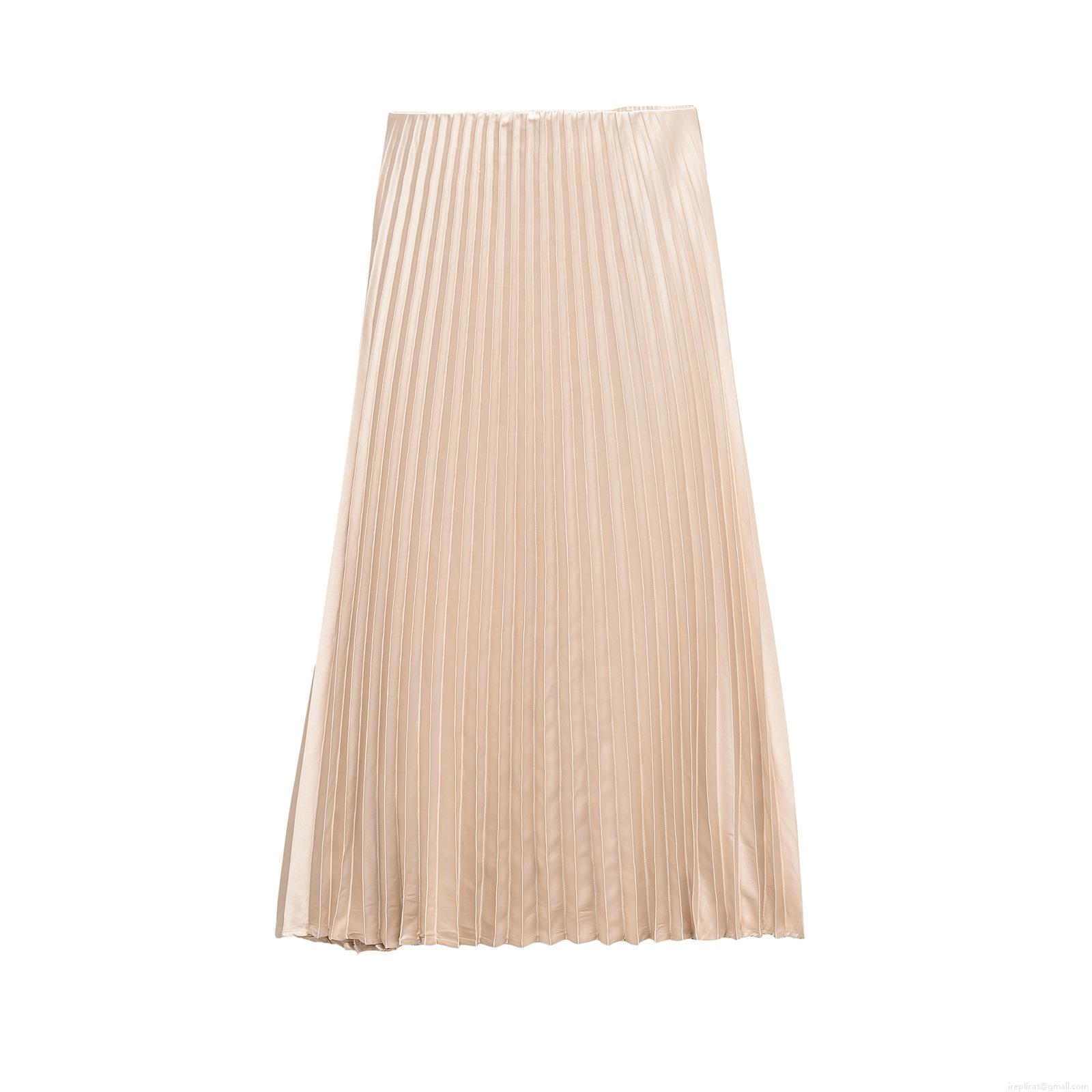 • Elegant Women's Satin Pleated Midi Skirt High Waist Elastic Silk Texture A-Line Long Skirt For Party Daily Streetwear Fashion Women