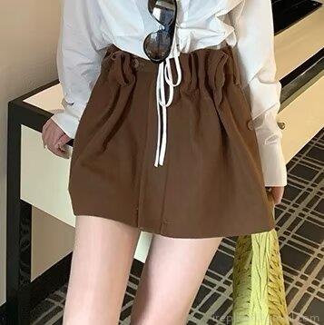 • Fashion Women Wool Blend A-Line Mini Skirt High Waist Coffee Brown Short Skirt With Button Pocket Streetwear Skirts For Women