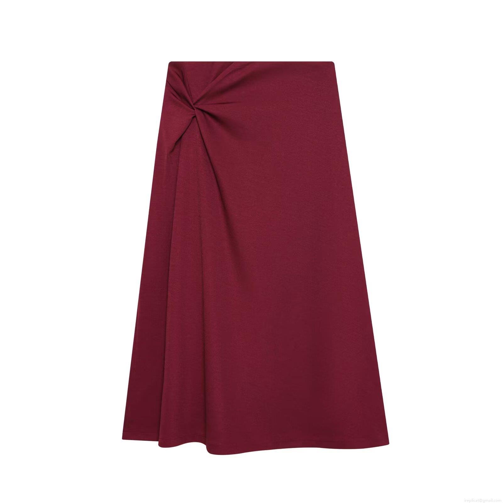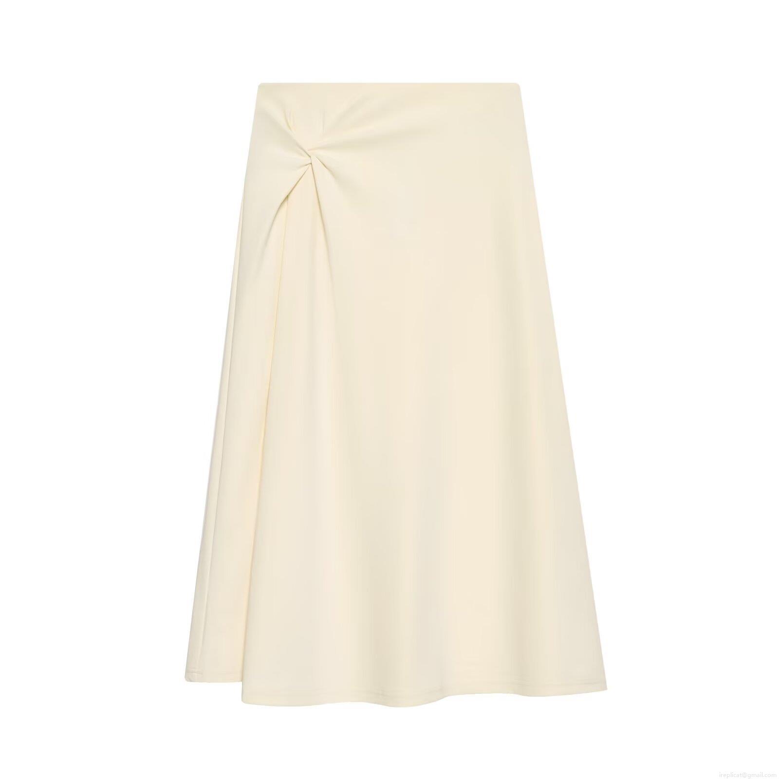 French Elegant Twist Knot Midi Skirt For Women High Waisted A-Line Solid Color Slit Skirt Fashion Commuter Streetwear Polyester Skirts