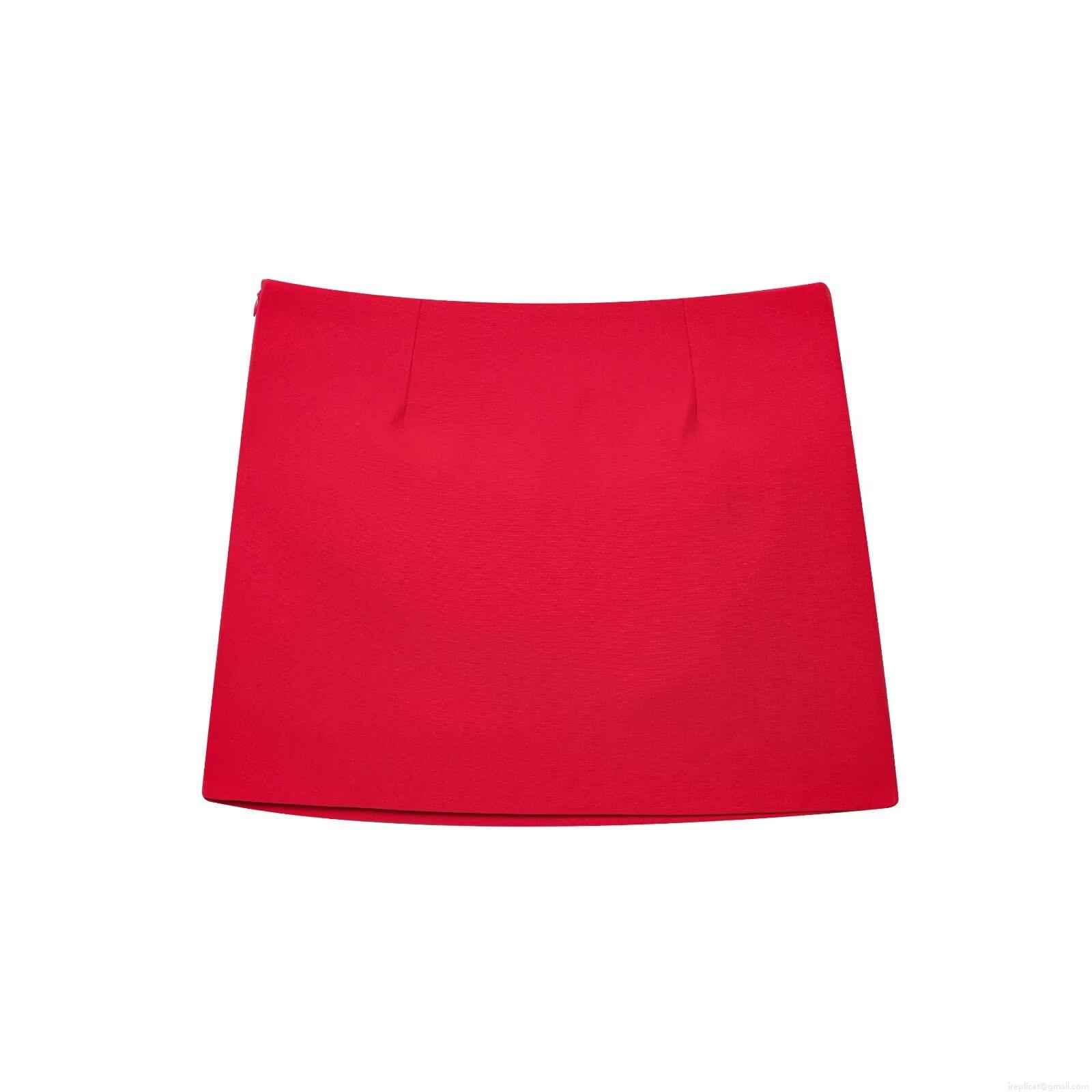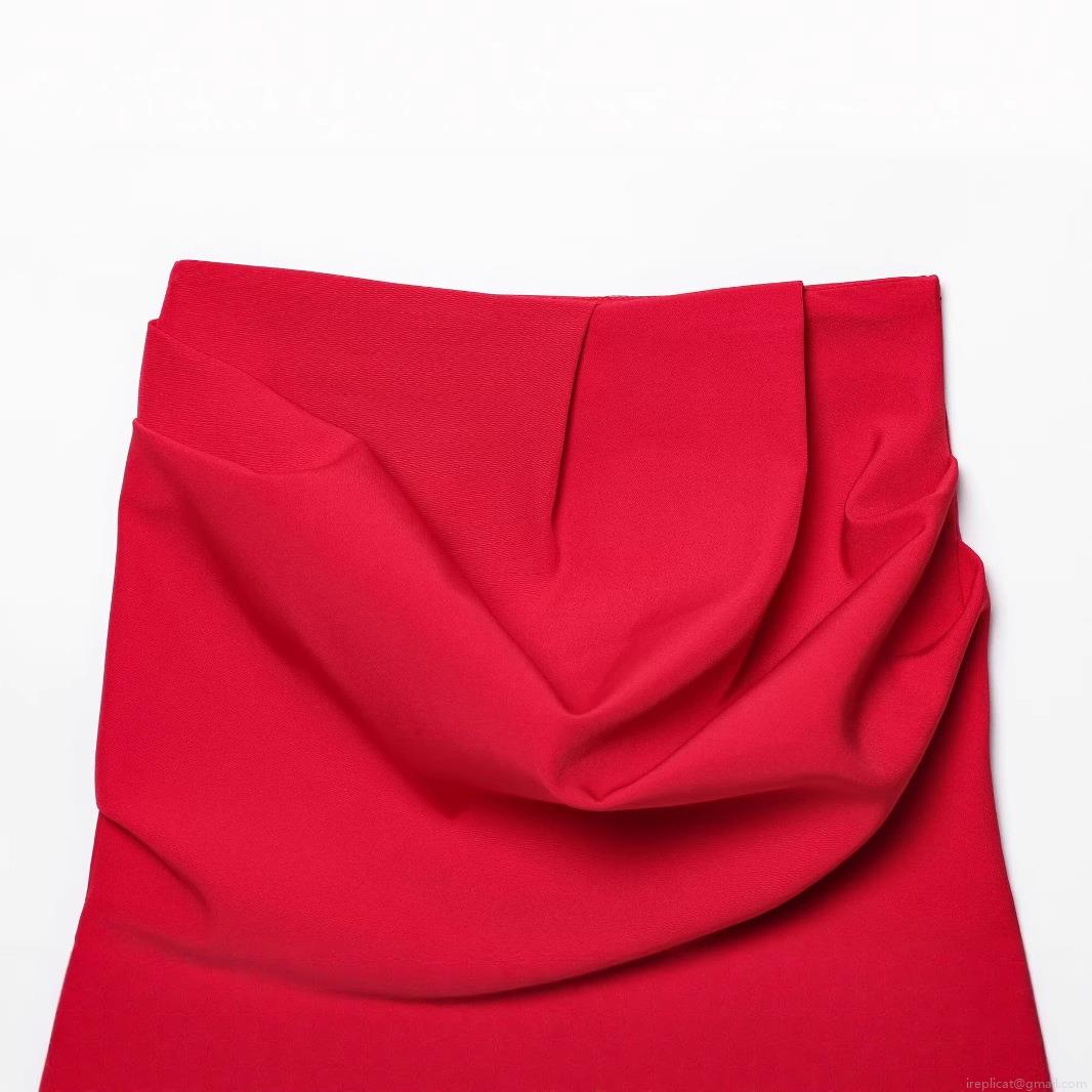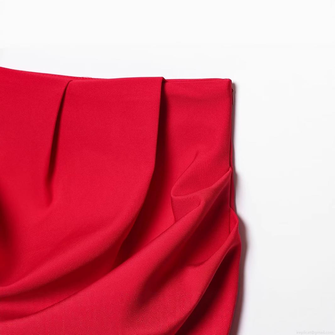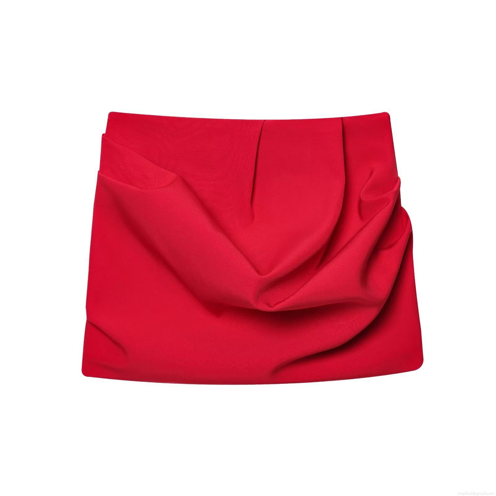 • Red High Waist Pleated Mini Skirt For Women Side Hidden Zipper Sexy Bodycon Pencil Skirt Solid Color Polyester Blended Fabric Casual Streetwear Party