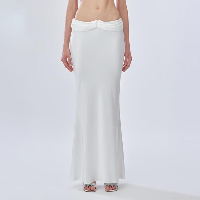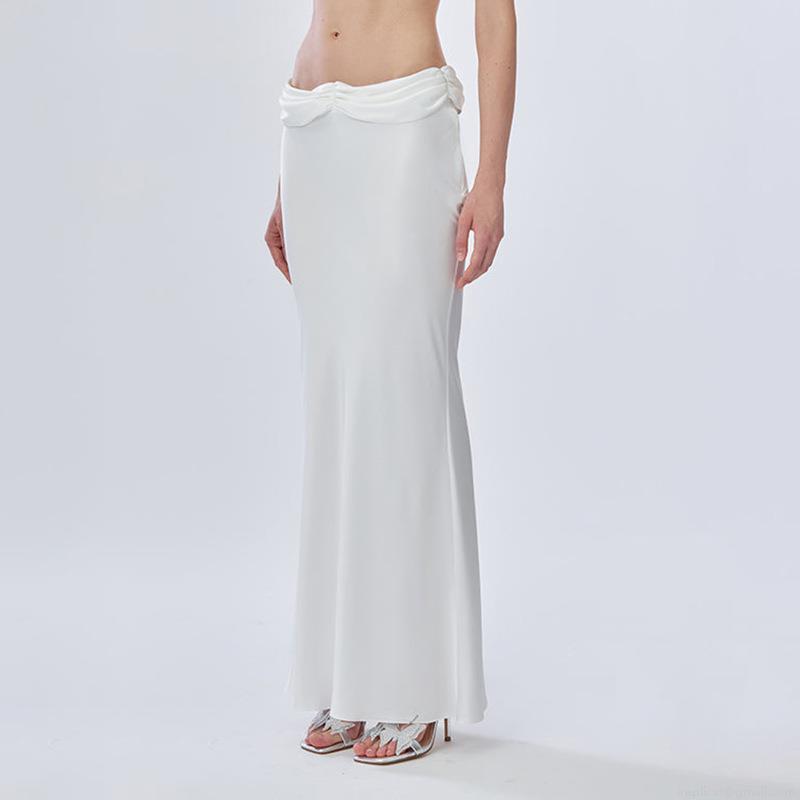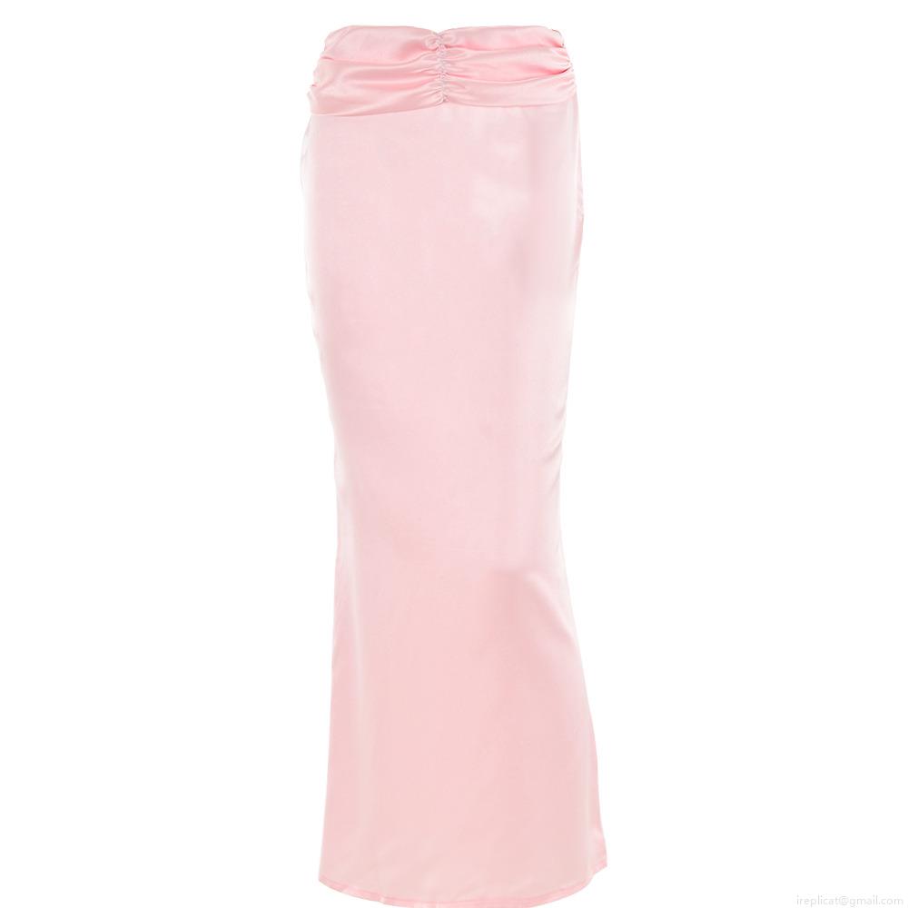 • Sexy Satin Mermaid Long Skirt for Women High Waist Ruched Wrap Hip Maxi Skirt Elegant Slim Fit Evening Party Streetwear Skirt
