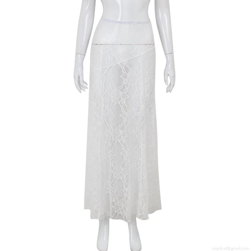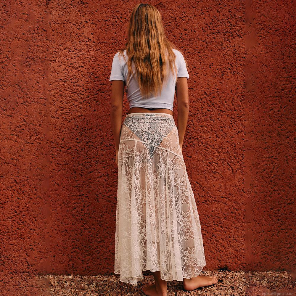 • Sexy White Lace See Through Maxi Skirt Women Low Waist Floral Mesh Hollow Out Summer Beach Vacation Long Skirt Elegant Polyester Spandex Skirt